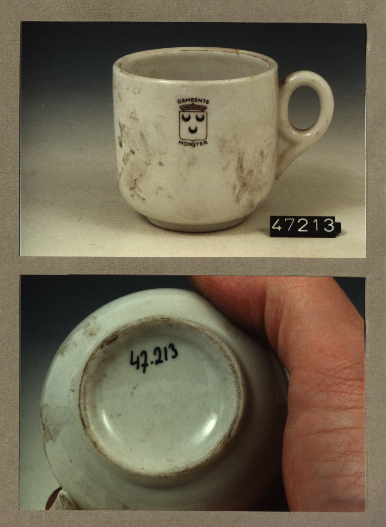 Kop met opschrift, model F2 met decor Gemeente Monster