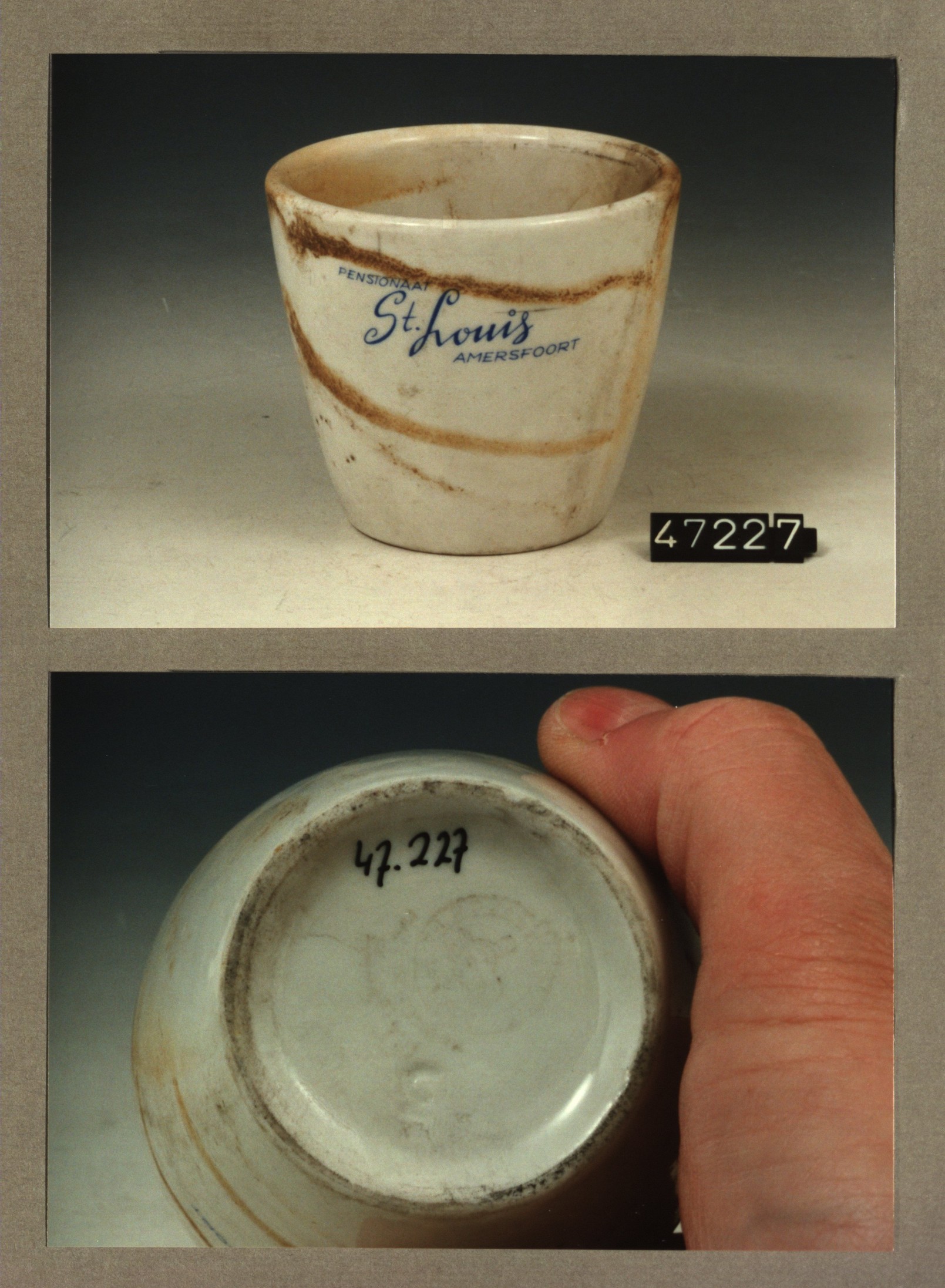 Beker met opschrift met decor Pensionaat St.Louis Am...