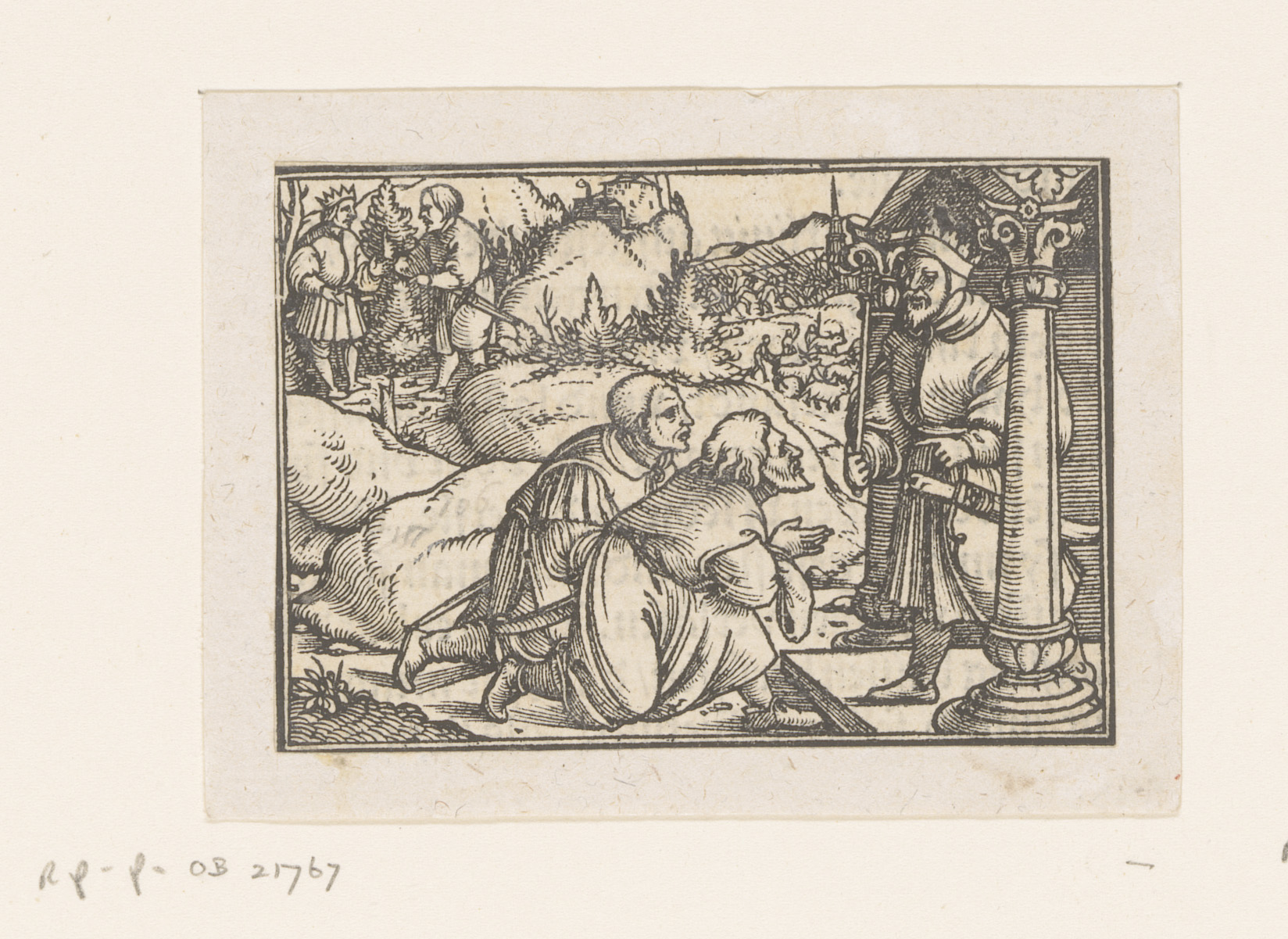 Twee mannen knielen voor een koning
