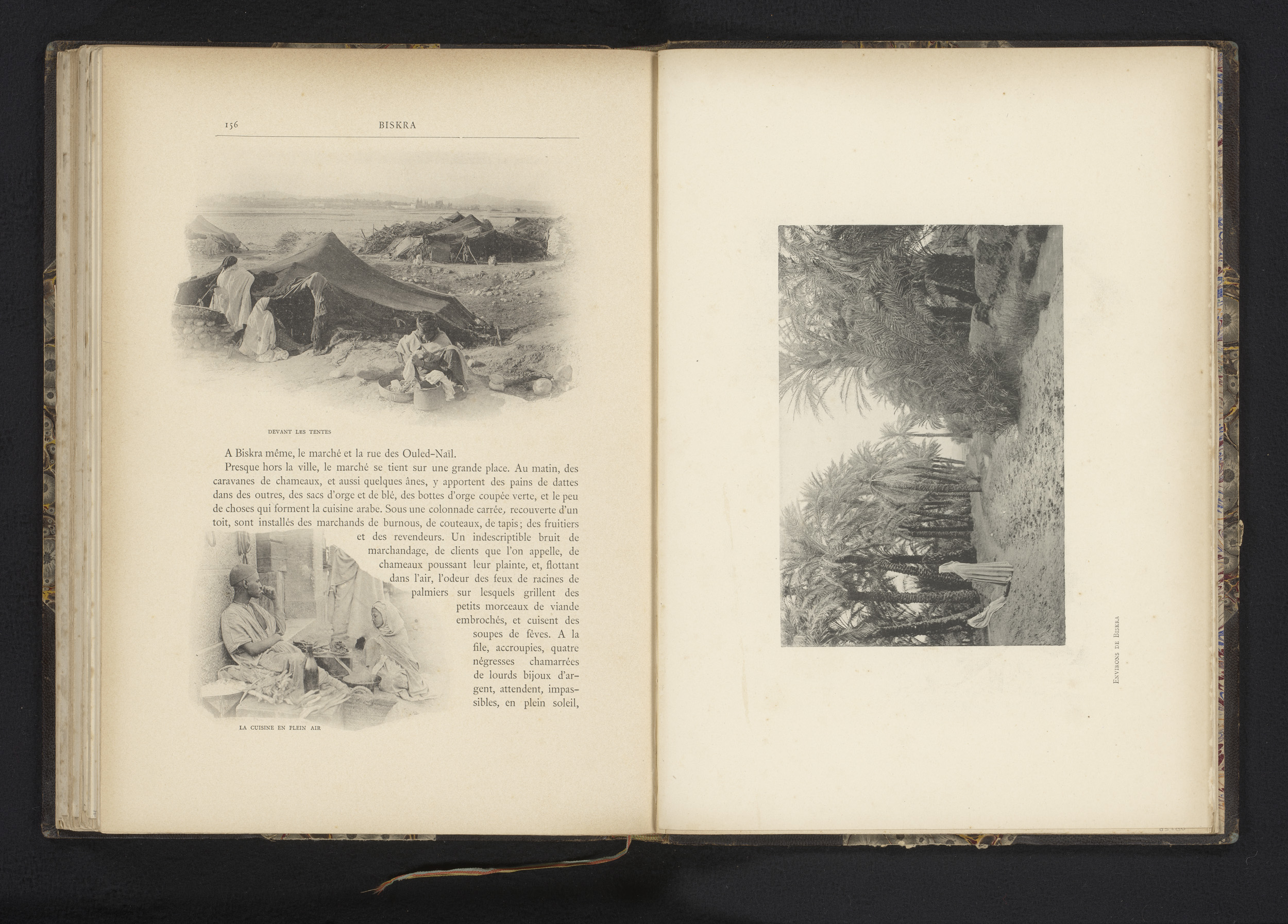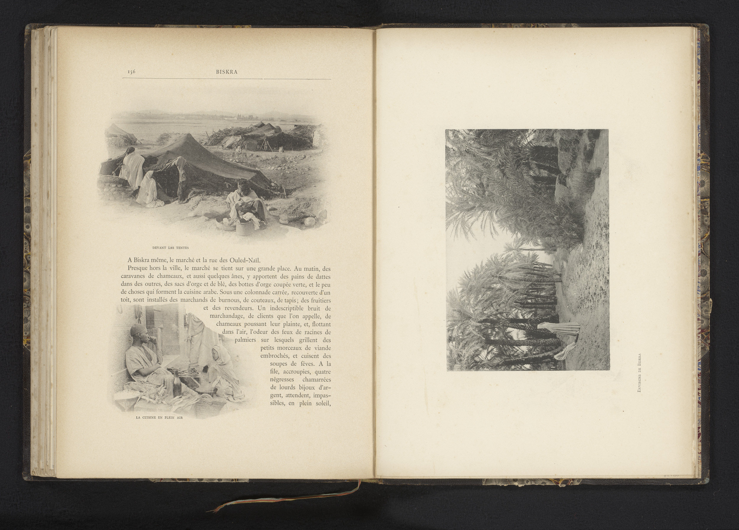 Man bereidt eten voor een tent bij Biskra, Algerije