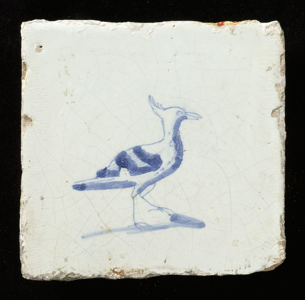 Tegel in tinglazuur, voorstellende kievit, ca. 1650-...