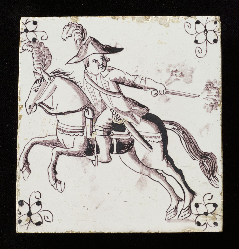 tegel van keramiek met tinglazuur, voorstellende: ru...