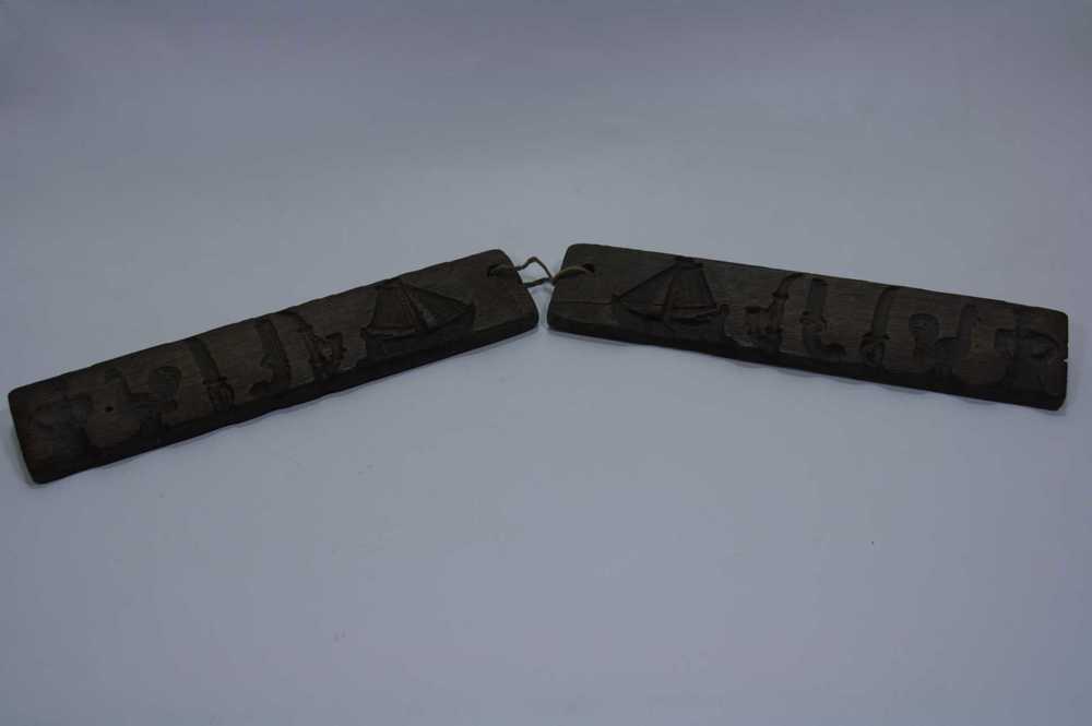 Suikerwerkplank van hout met 6 figuren: een mens, di...