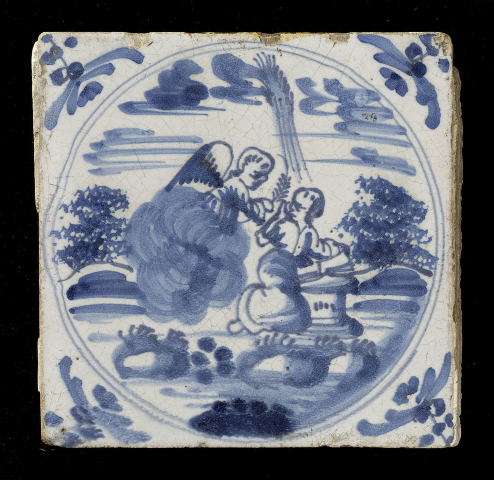 tegel van aardewerk met tinglazuur, voorstellende: P...