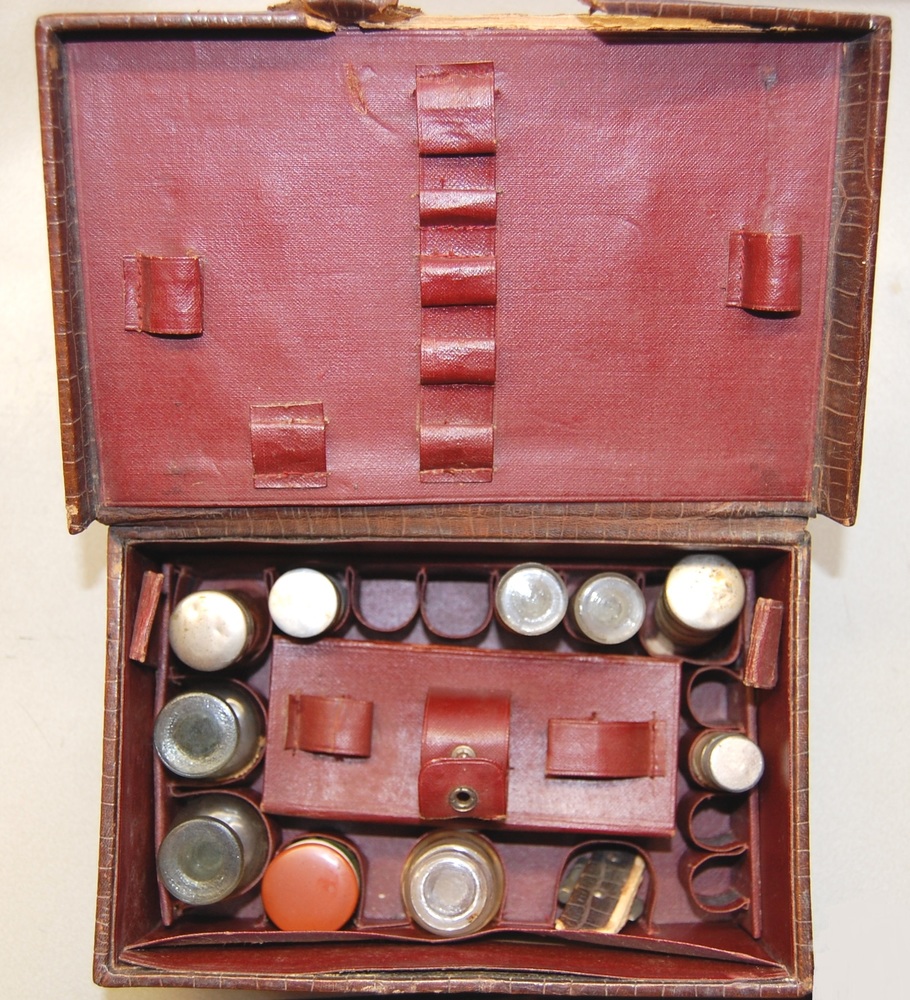 medicijnkistje. Rechthoekig leren model met scharnie...