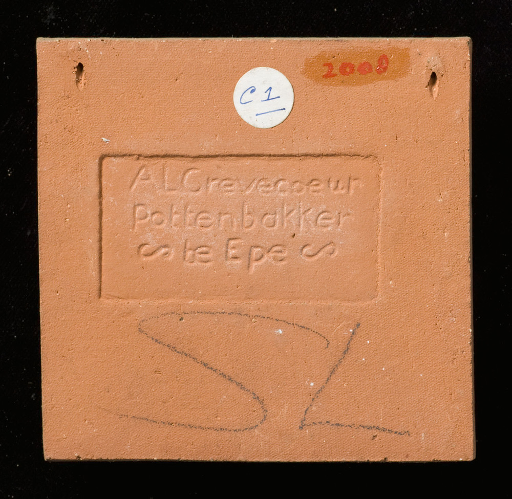 Tegel van keramiek, reliëf, voorstellende een figuur...
