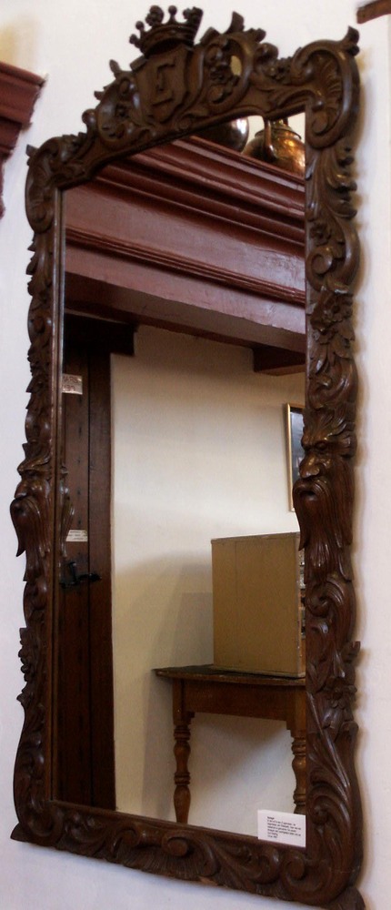 spiegel van gedecoreerd hout en glas, afkomstig uit ...