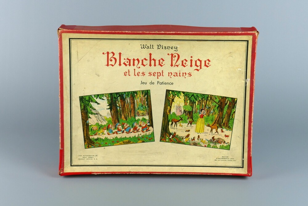 Puzzel, papier op triplex met voorstellingen van Sne...