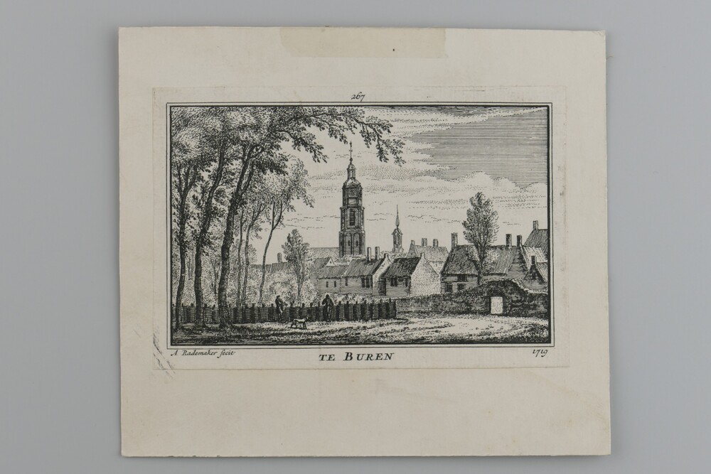 Gravure voorstellende een gezicht op Buren, vervaard...