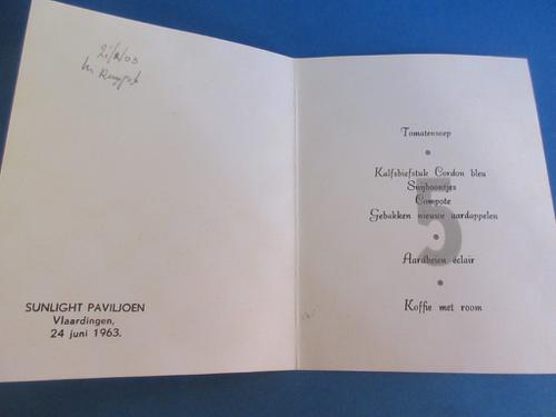 Unilever, Lever's zeep, Vlaardingen. menukaart Sunli...