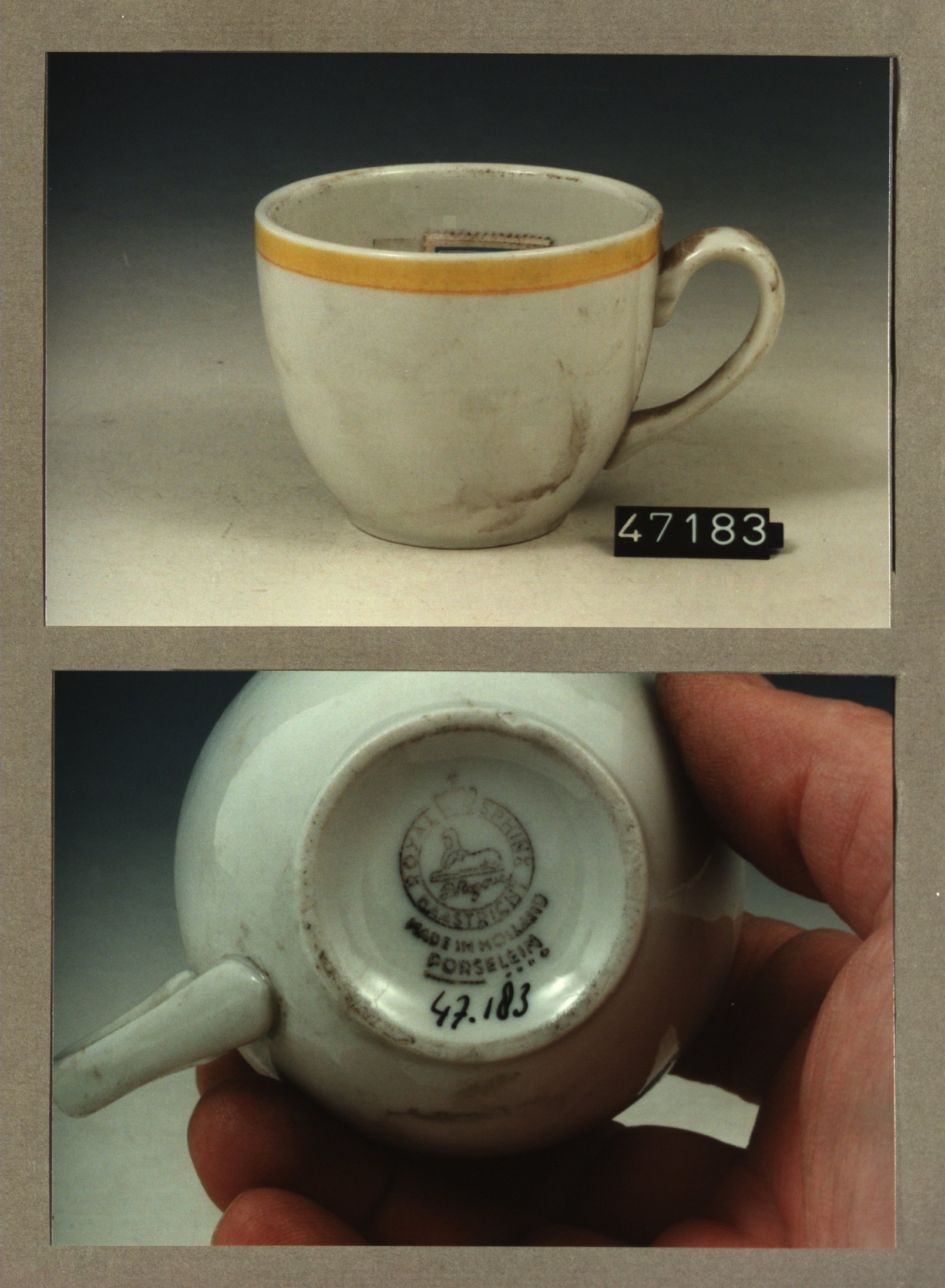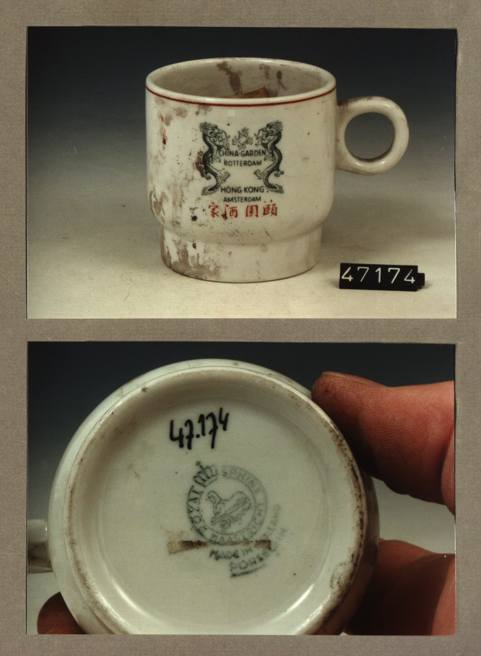 Kop met opschrift, model I met decor Halcyon line Ro...