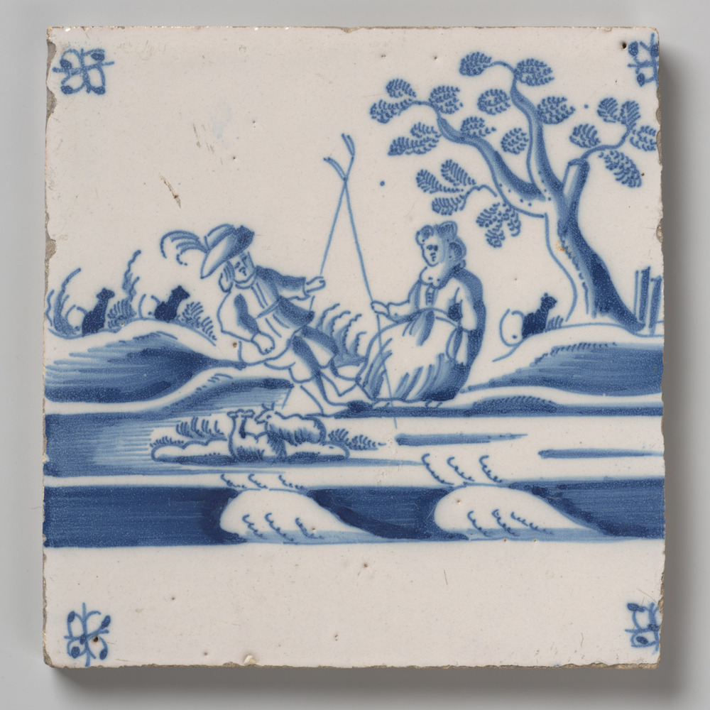 tegel van aardewerk met tinglazuur, voorstellende: h...