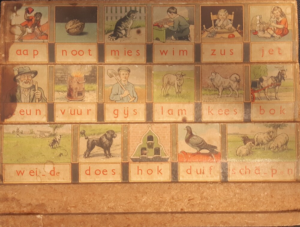 Hoogeveens Leesplankje 'aap-noot-mies' van hout door...