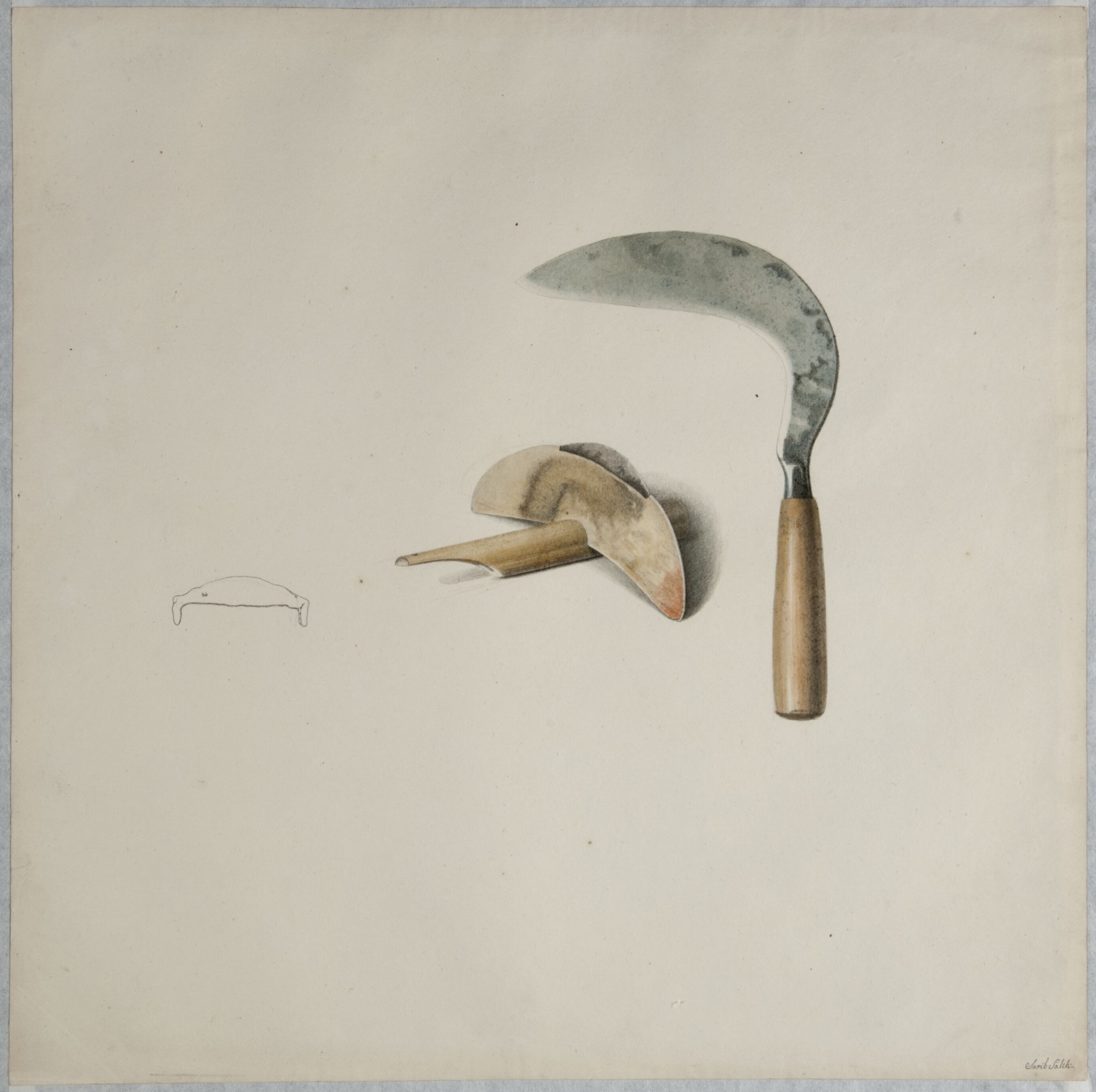 Aquarel by Raden Saleh depicting a knife and sickle