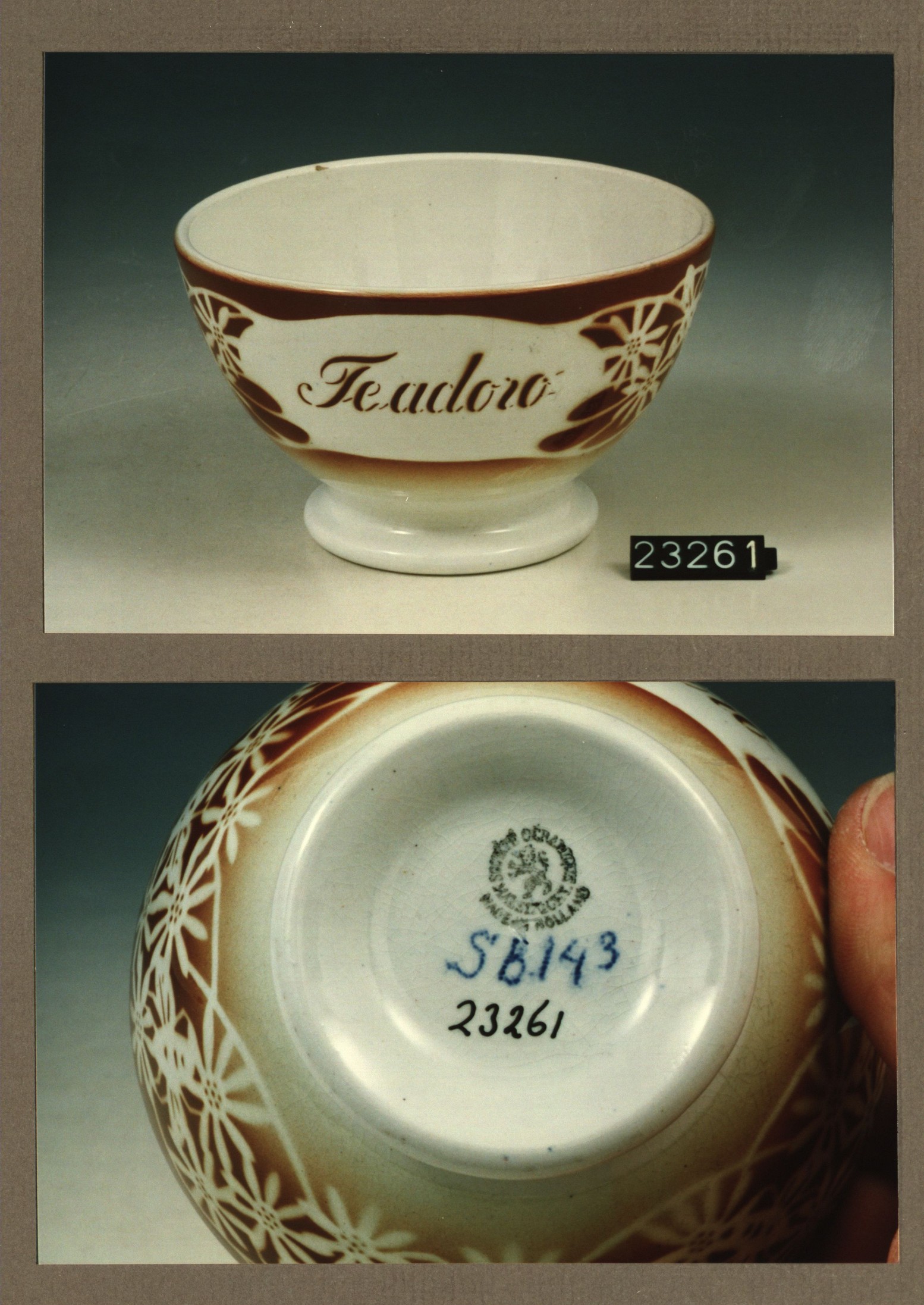 Kom met opschrift, model Hollandaise met decor 143 T...