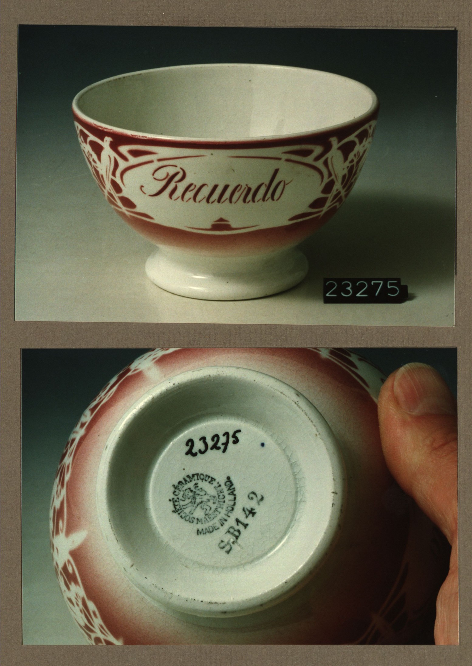 Kom met opschrift, model Hollandaise met decor 142 R...