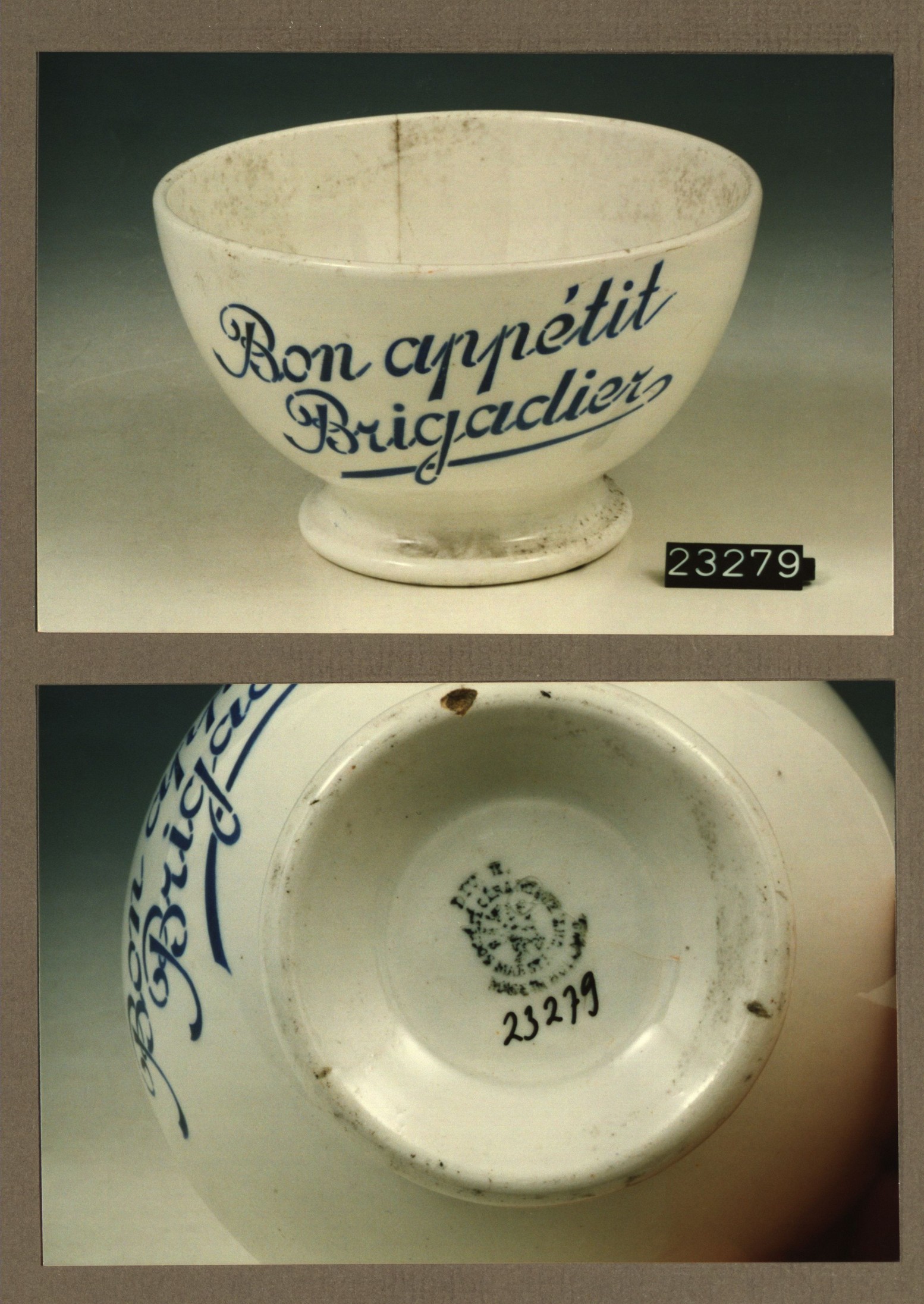 Kom met opschrift, model Hollandaise met decor Bon a...