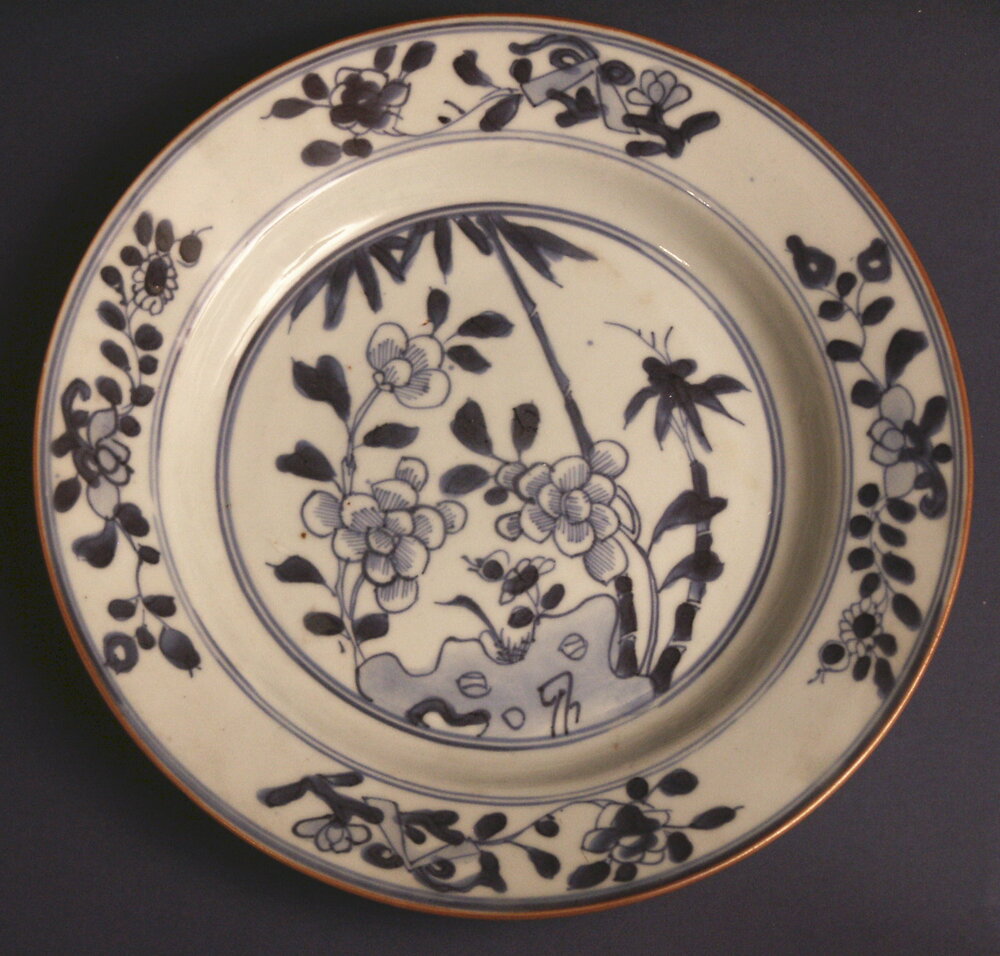 3 porseleinen borden met een bloemen- en bamboedecor.