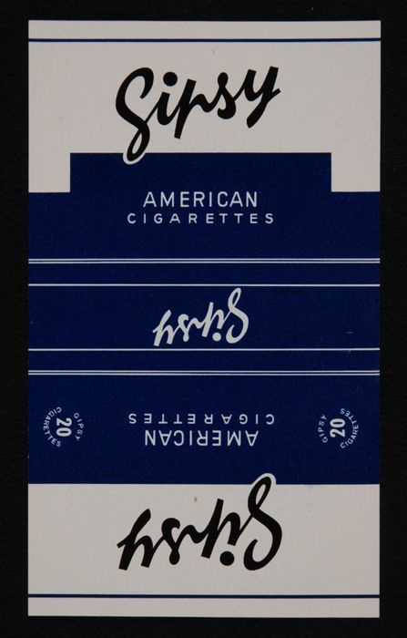 Twee wikkels van pakje sigaretten "Gipsy", blauw