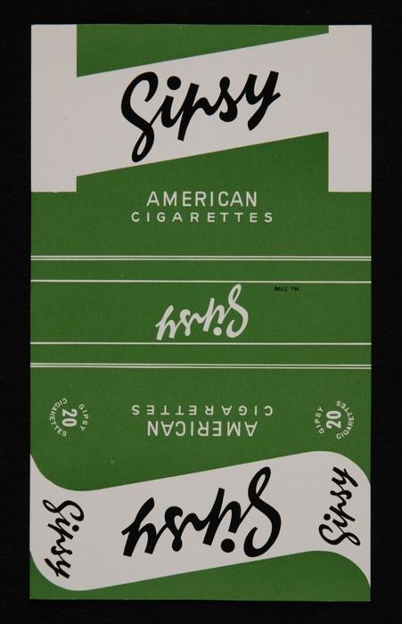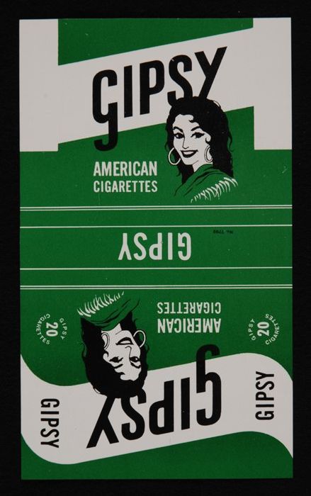 Twee wikkels van pakje sigaretten "Gipsy", groen met...