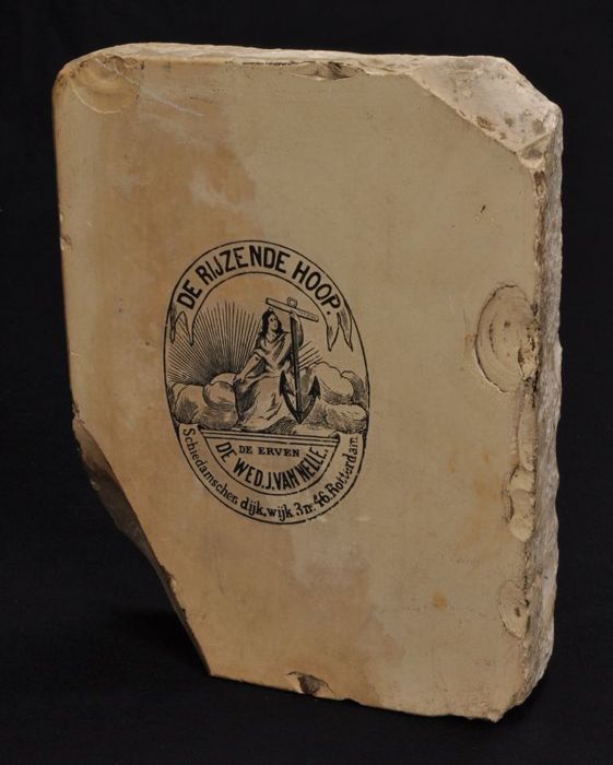 Stenen drukplaat Van Nelle met beeldmerk "de Rijzend...