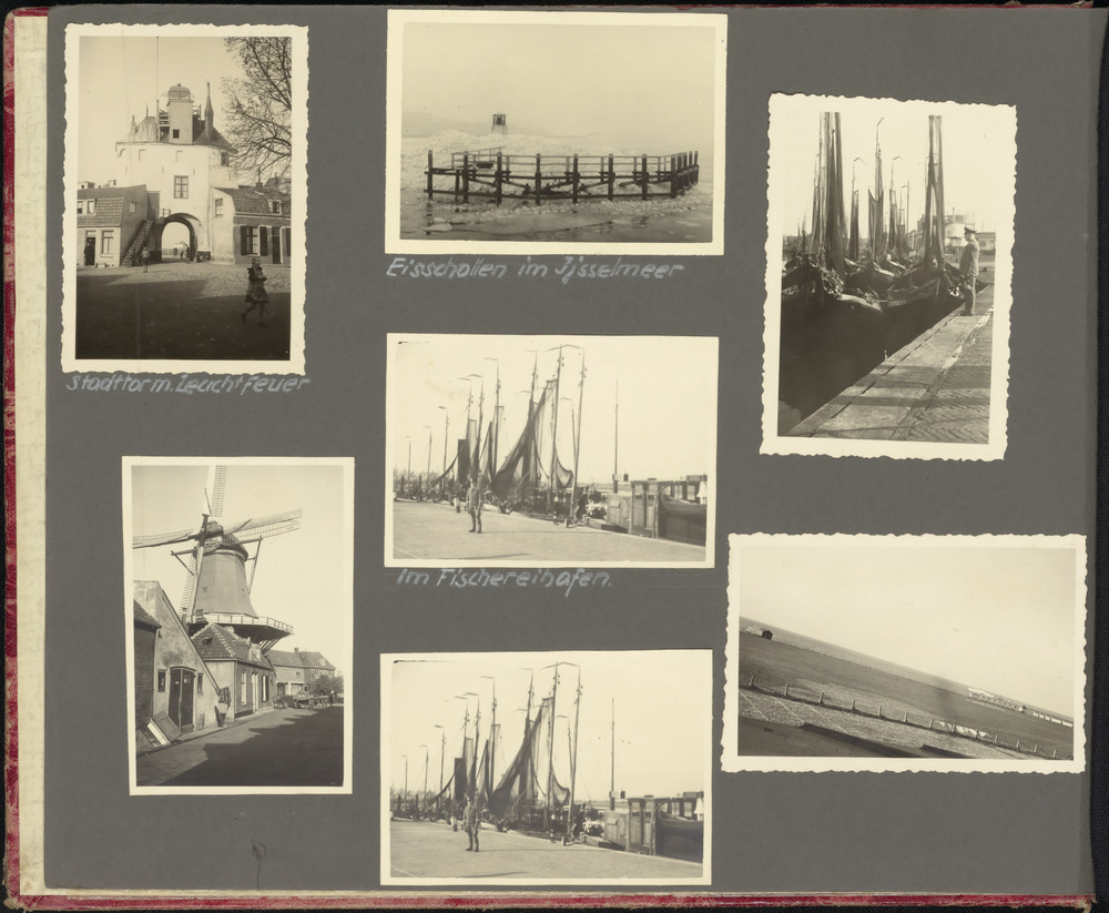 Zeven foto's: Vispoort te Harderwijk, ijsschotsen IJ...