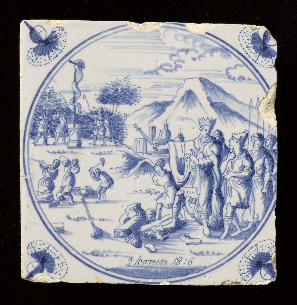 tegel van aardewerk met tinglazuur, voorstellende: l...