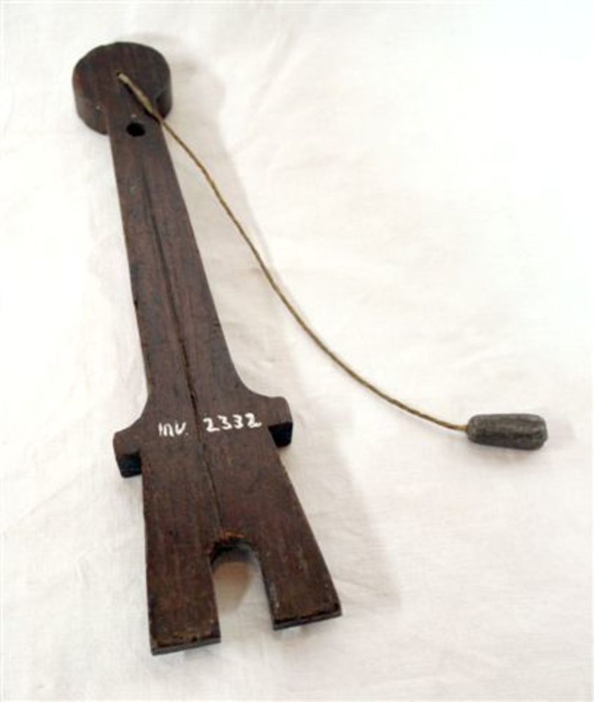 schietlood. Houten plankje, rond gezaagd met bovenaa...