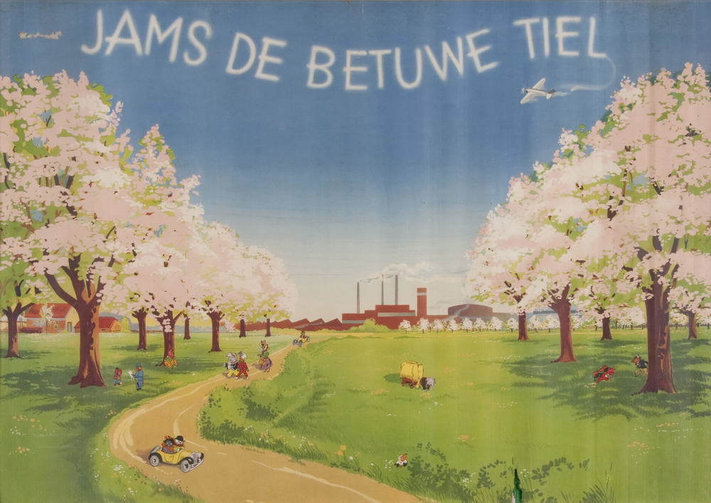 Reclameplaat, voorstellende een bloeiende boomgaard ...