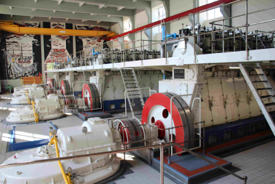 Drie van de vier dieselmotoren van gemaal Wortman bi...
