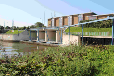 Uitstroomkant van gemaal Wortman met aan de linkerka...