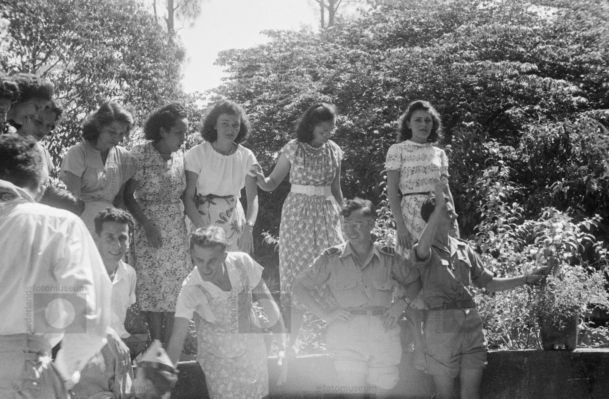 Feestje in de tuin van burger Ed Nuse aan de Reinier...