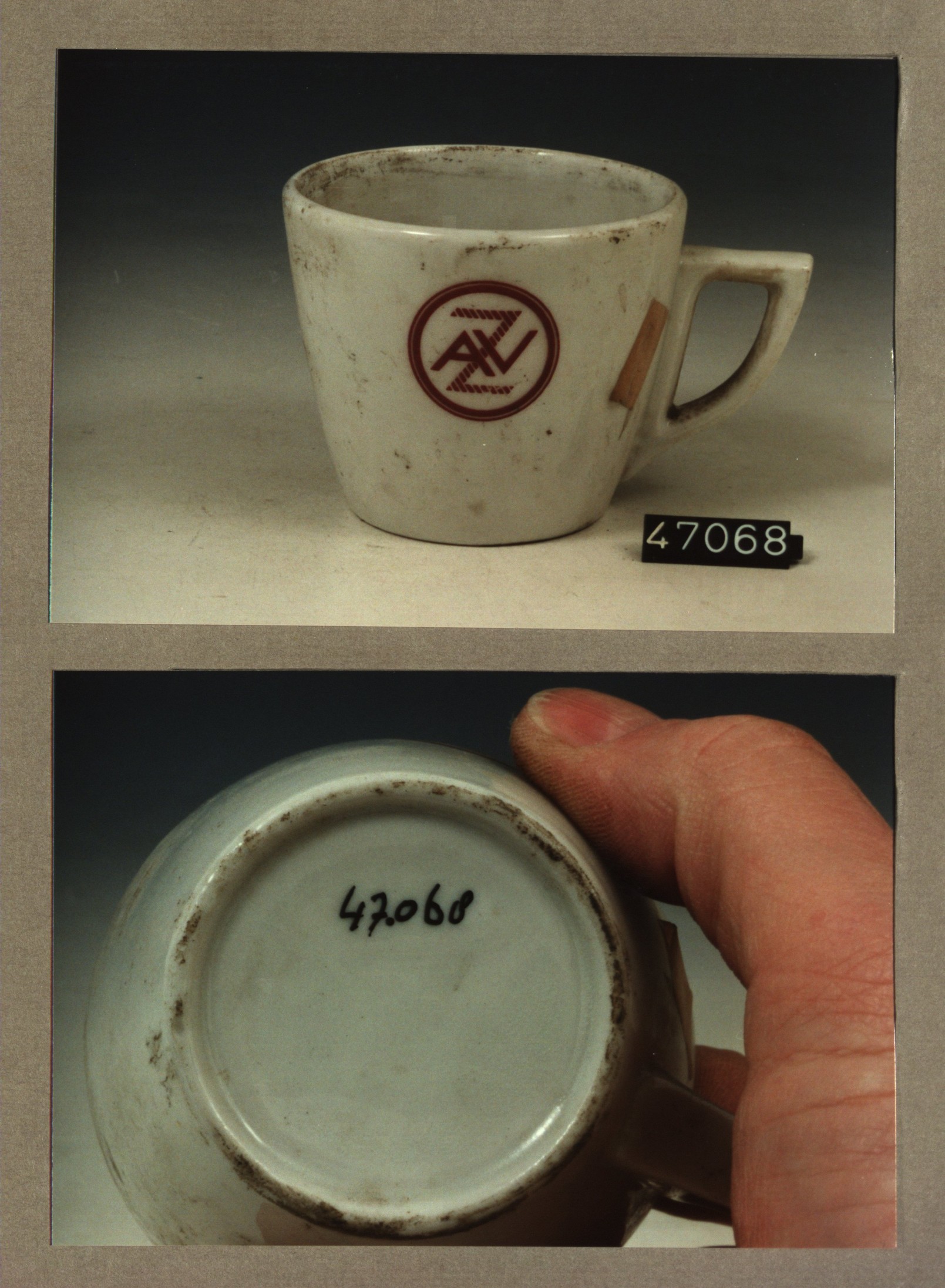 Kop met opschrift, model P met decor AZV