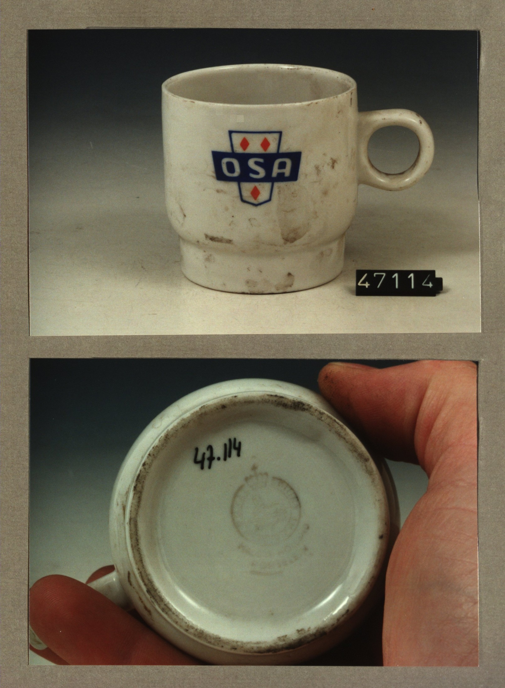 Kop met opschrift, model H met decor OSA