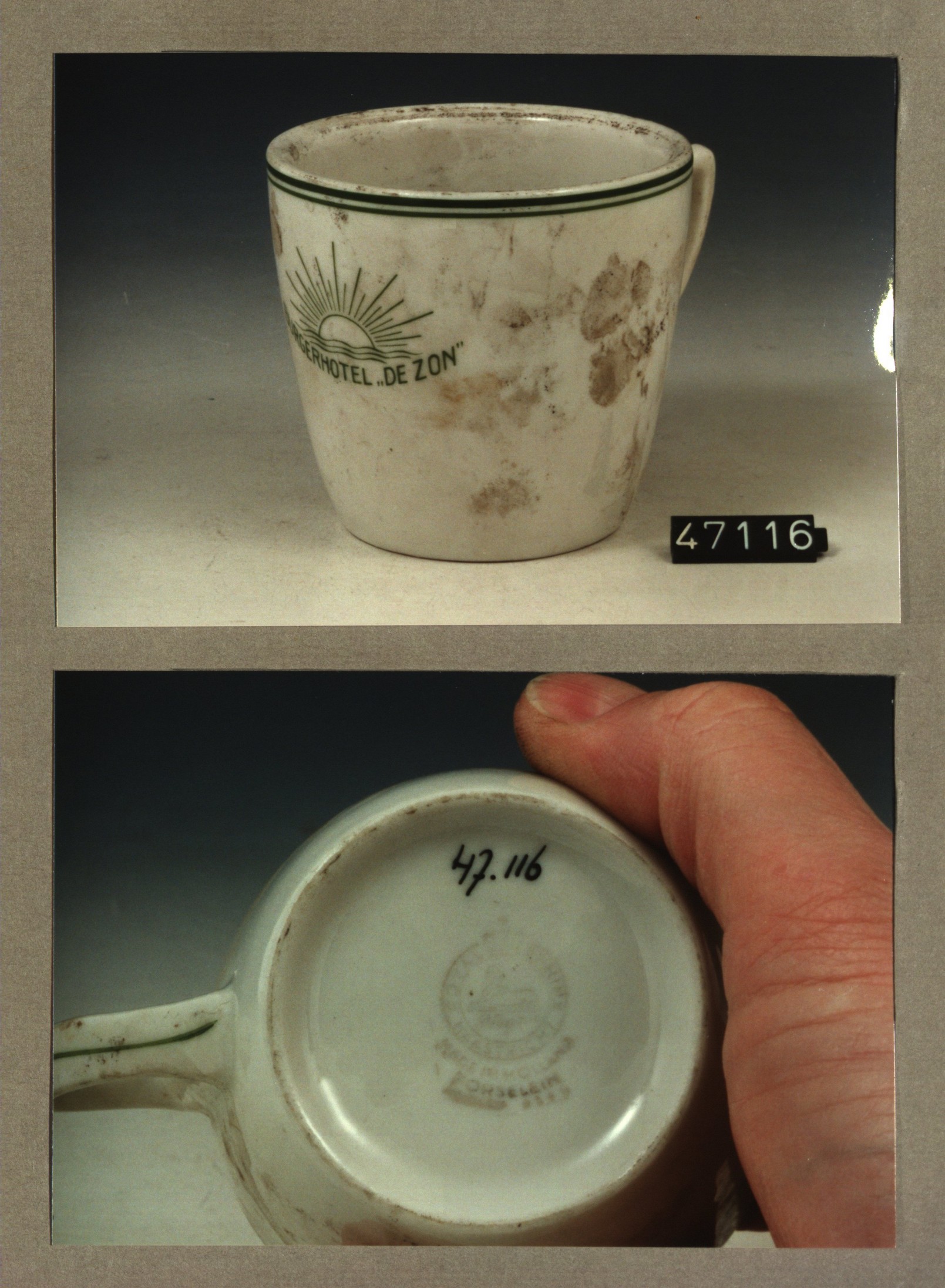 Kop met opschrift, model P met decor Burgerhotel De zon