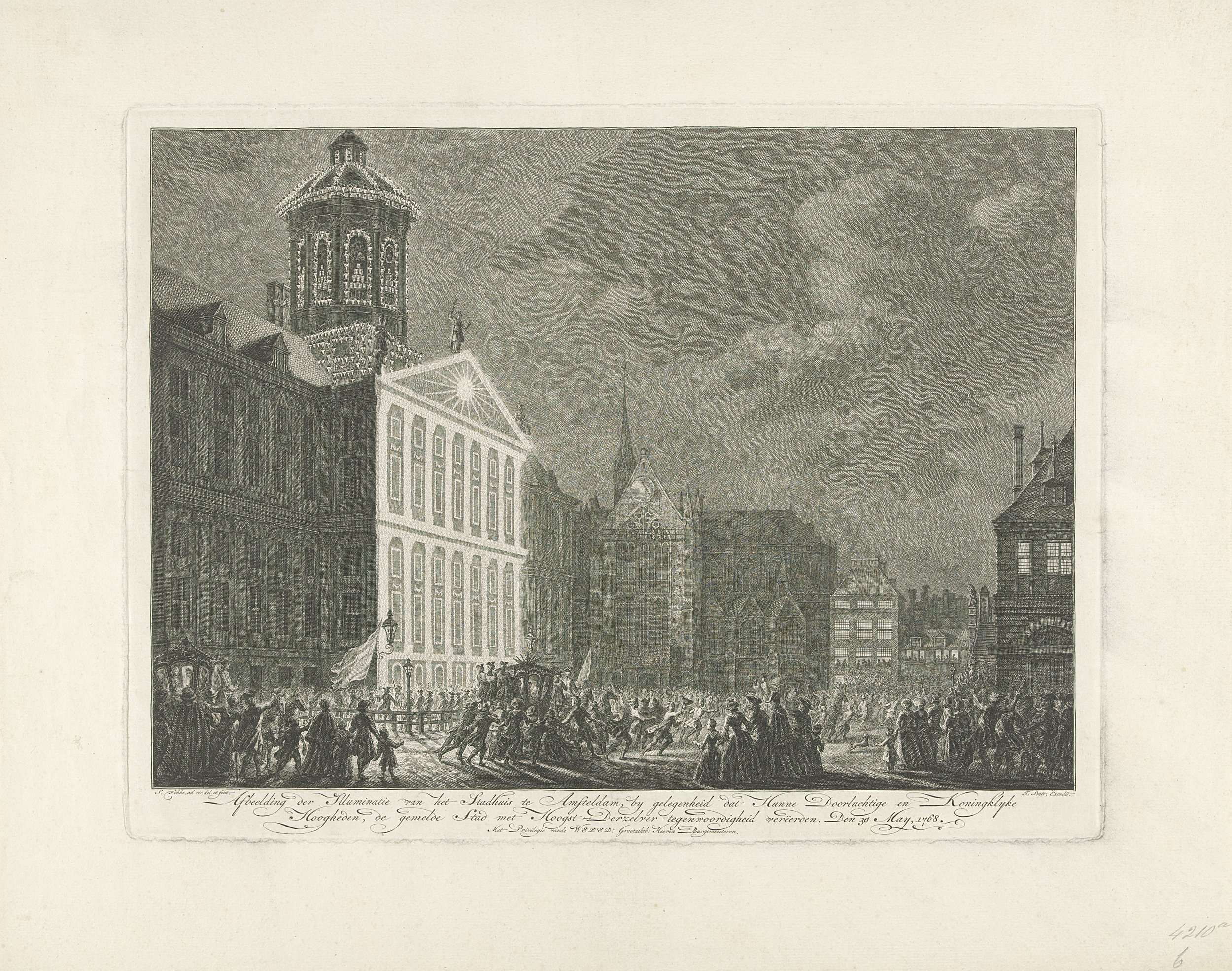 Illuminatie van het stadhuis voor Willem V en Wilhel...