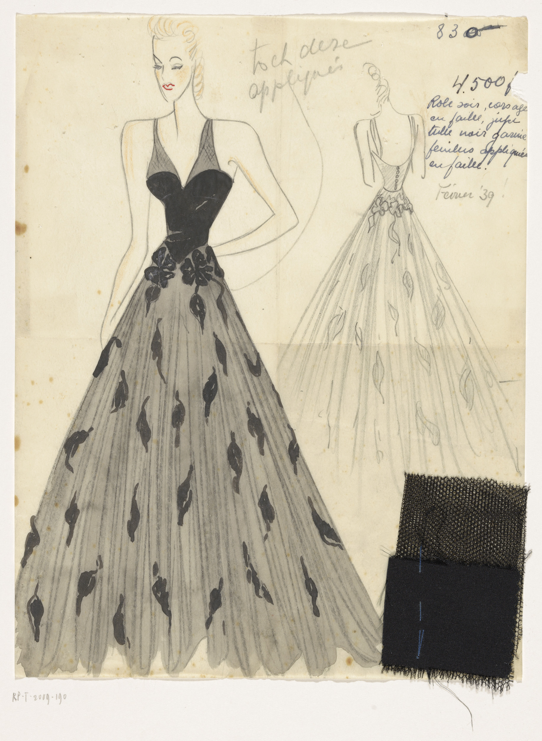 Robe soir, corsage en faille, jupe tulle noir garnie...