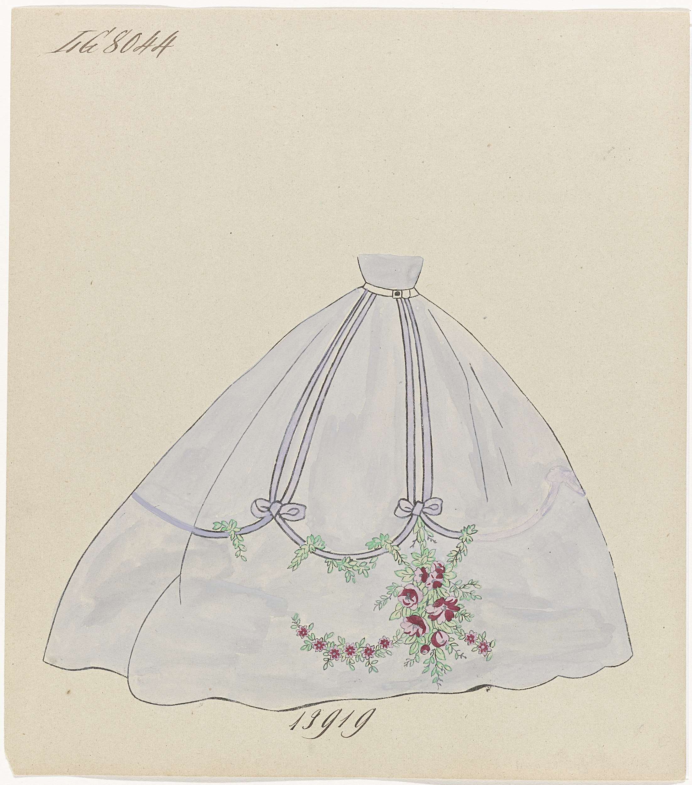 Vrouw in witte avondjurk met bloempatroon, 1914, No....