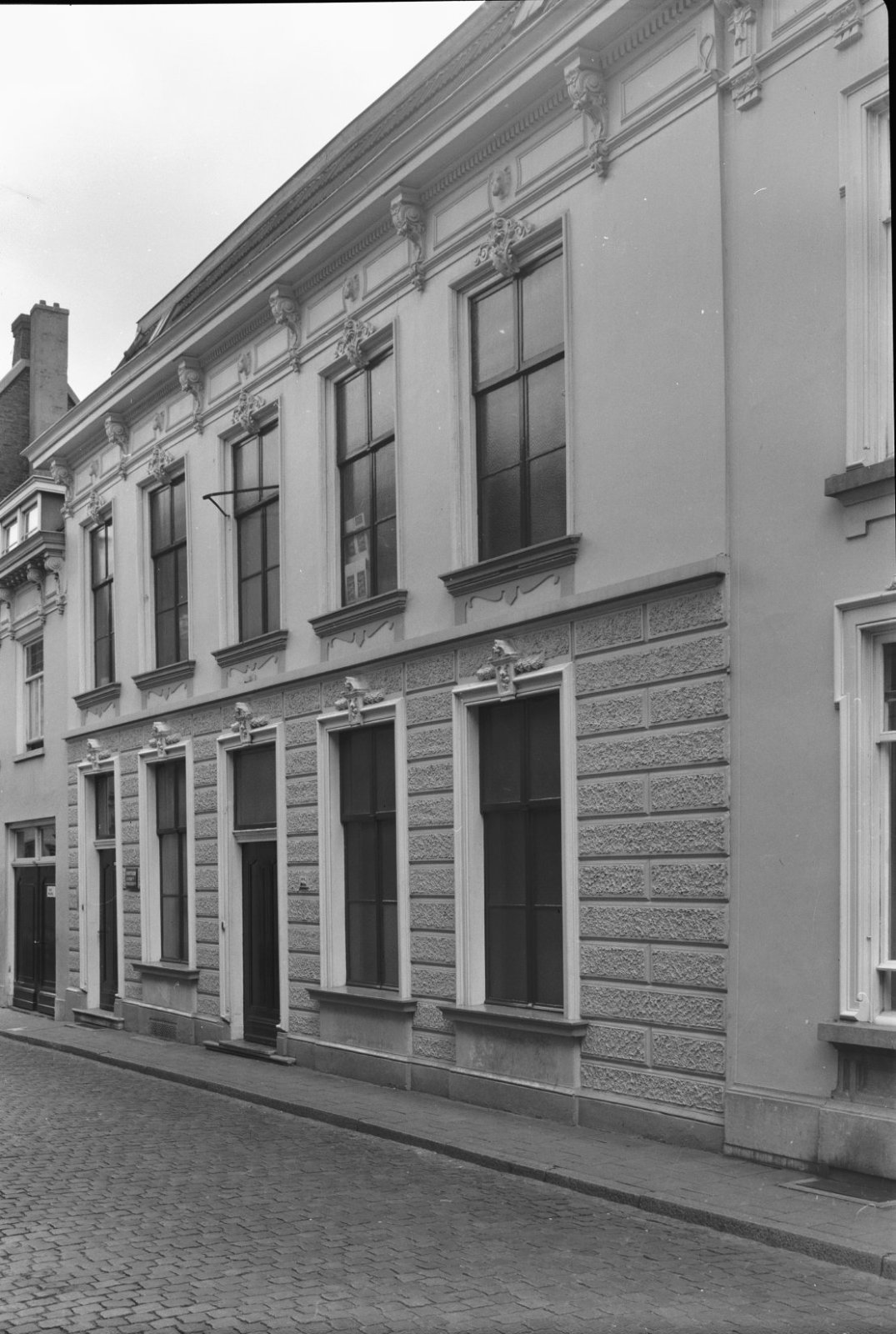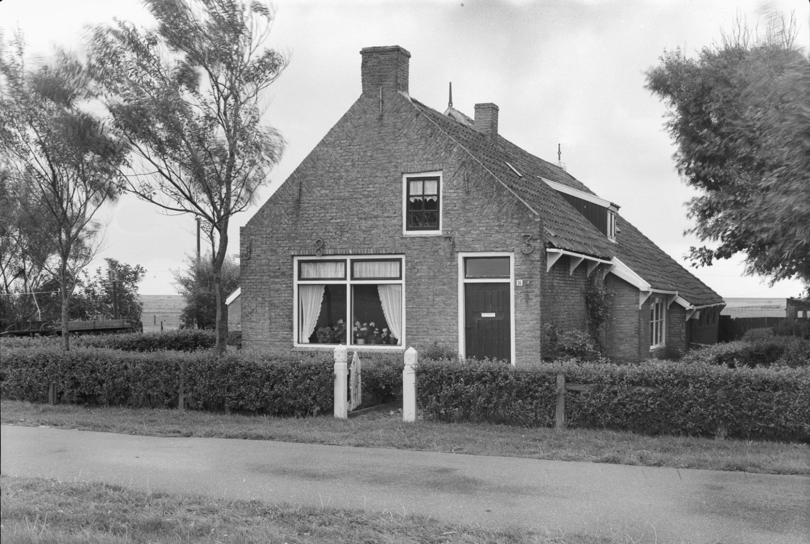 Overzicht voorgevel, ramen met roedeverdeling en lui...