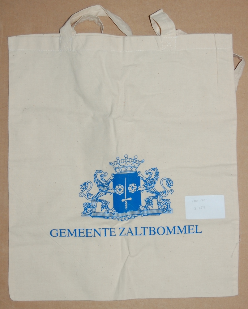 linnen draagtas met stadswapen van Zaltbommel. Relat...