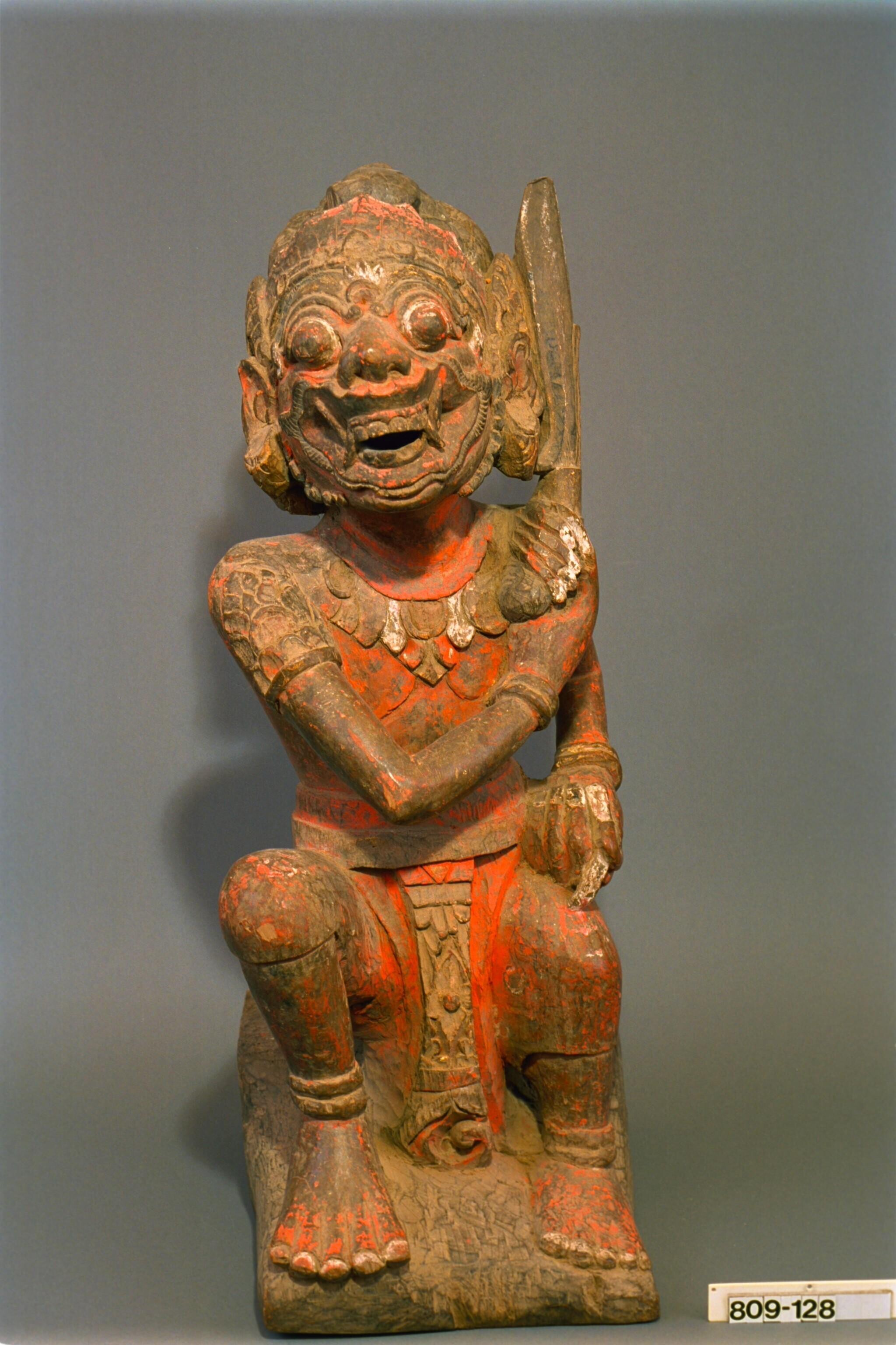 Houten beeld in de vorm van een tempelwachter