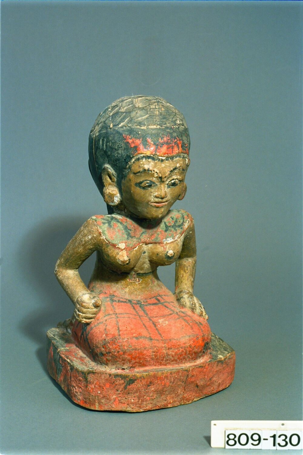 Wooden statue of a sitting female