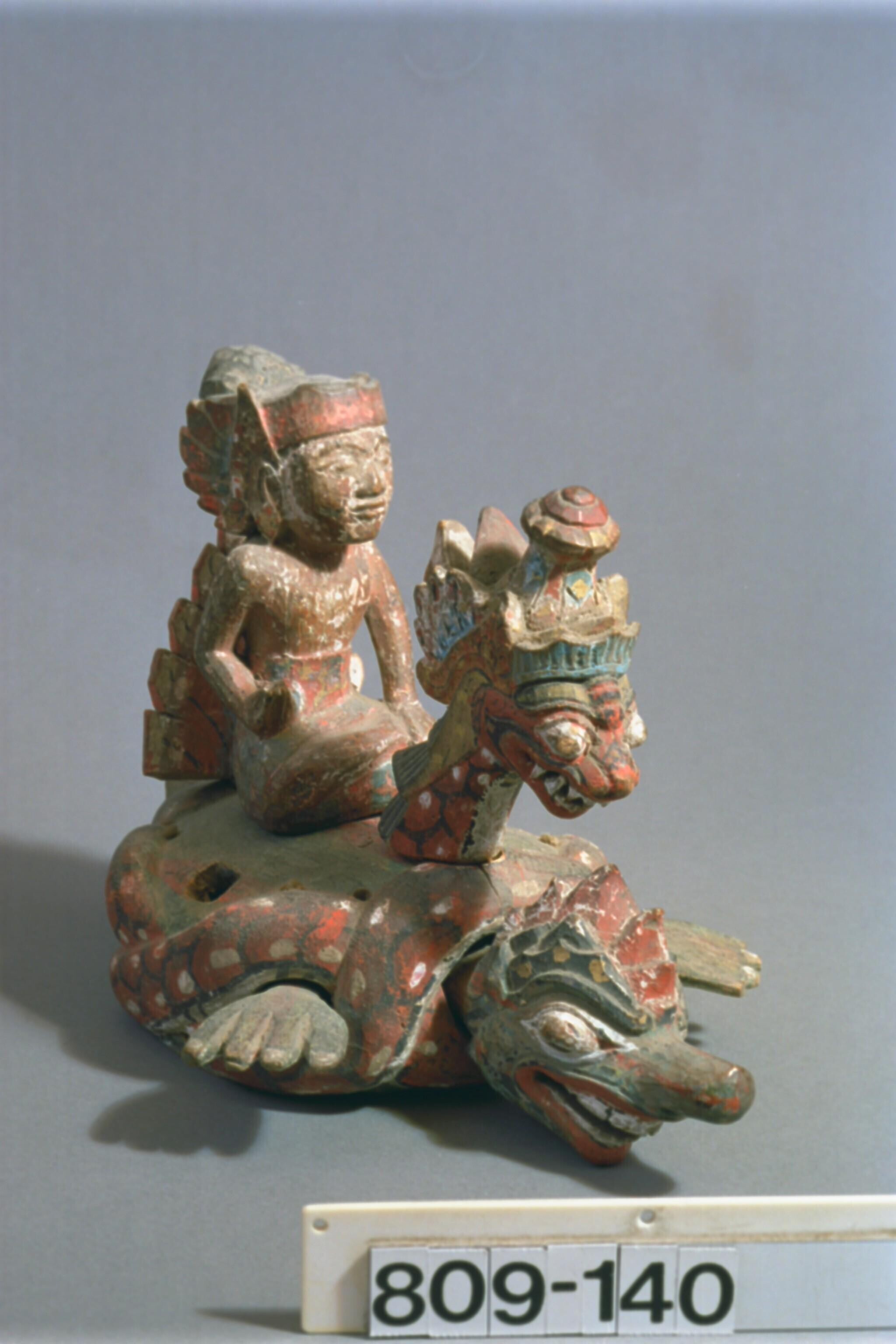 Houten beeld, voorstellende de god Wisnu, de schildp...