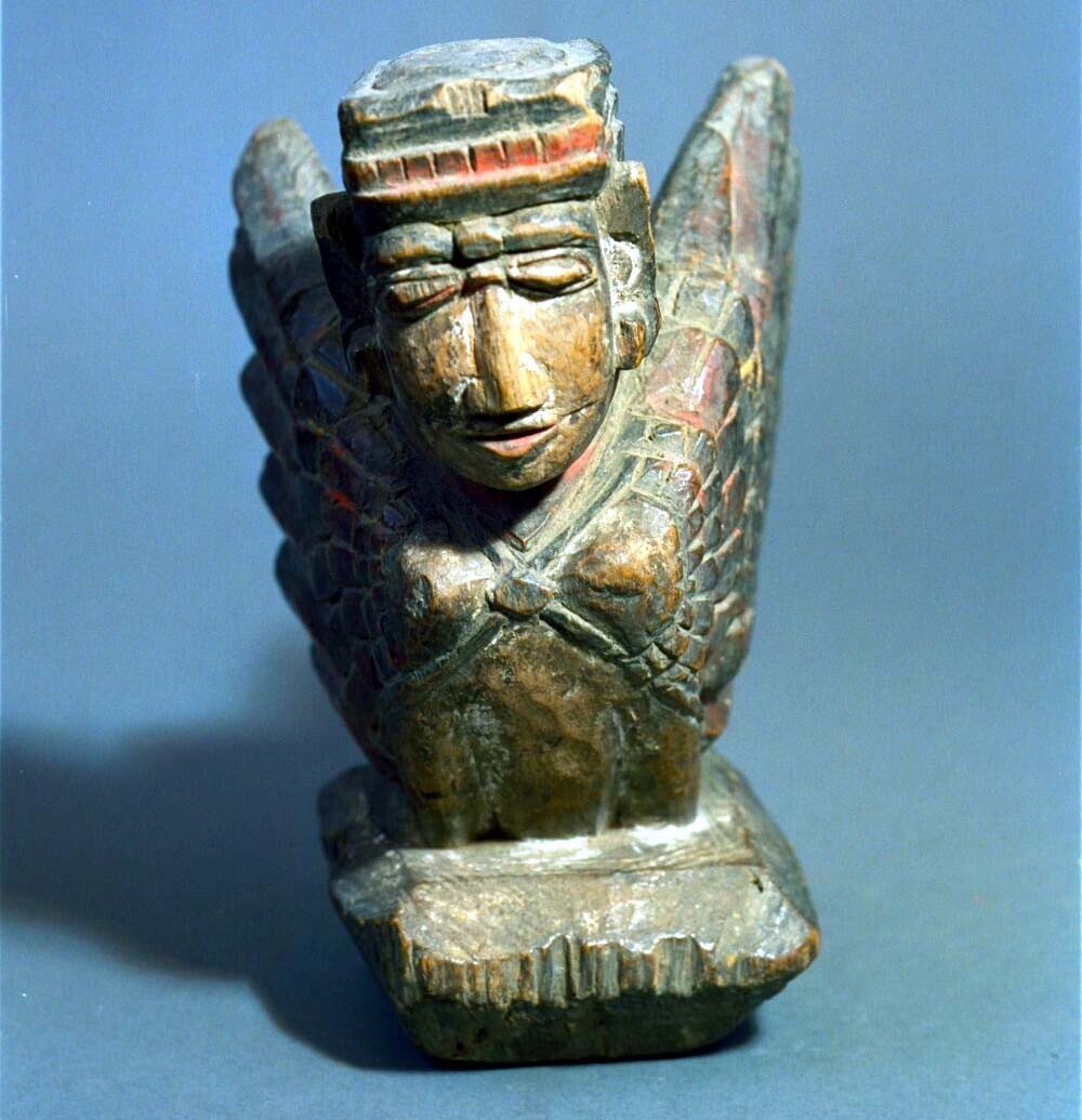 Houten beeld voorstellende een gevleugelde Singha