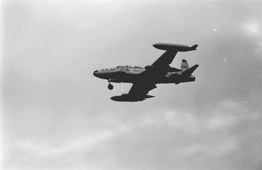 Lockheed T-33A 70539 32 FIS USAF in de landing.