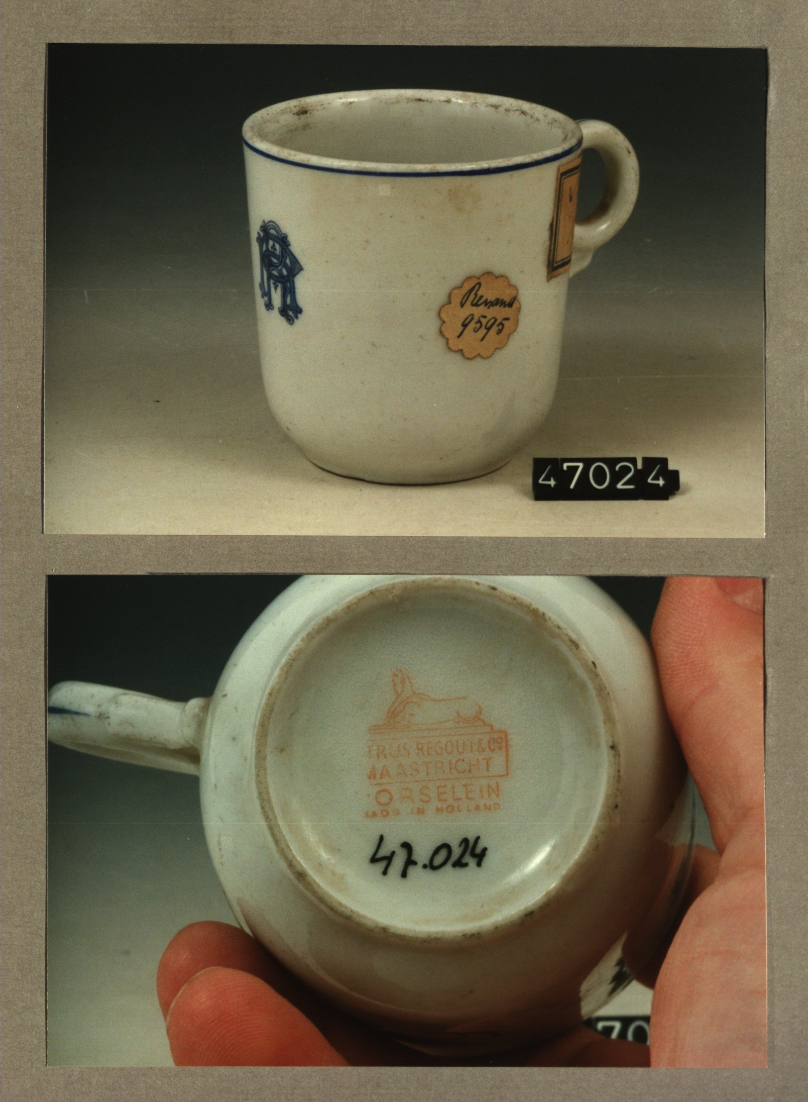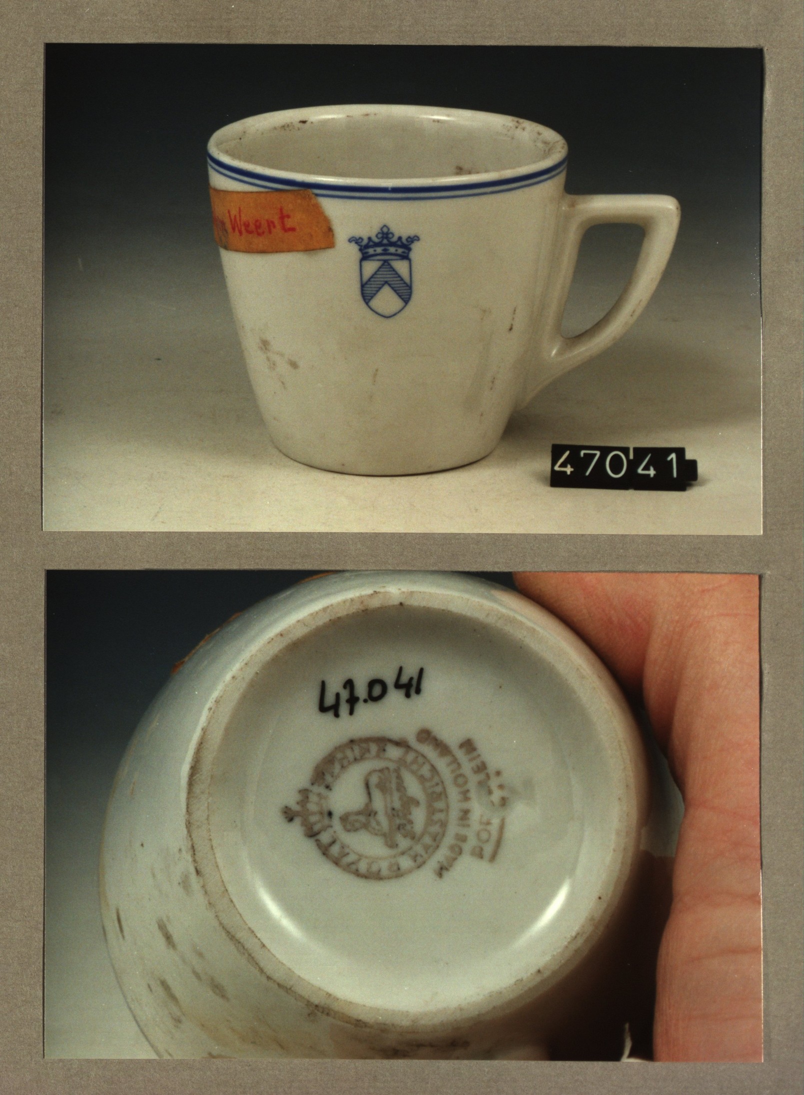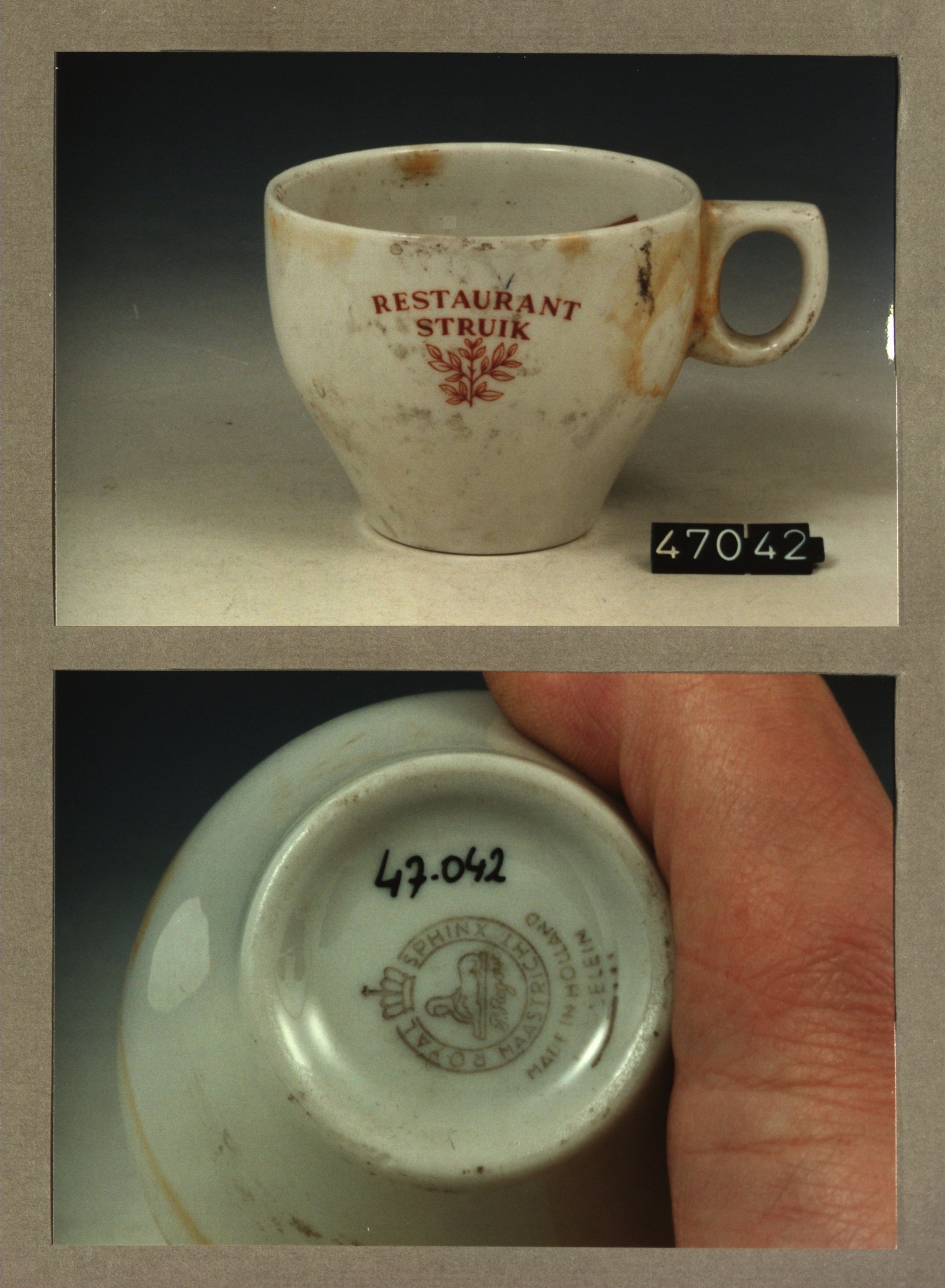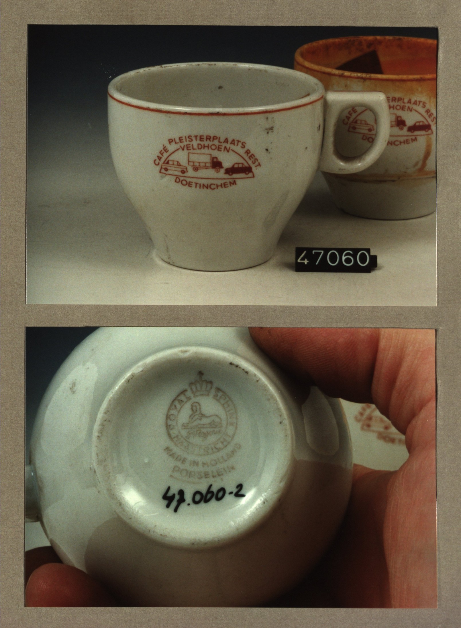 Kop met opschrift, model SPH met decor Cafe Veldhoen...