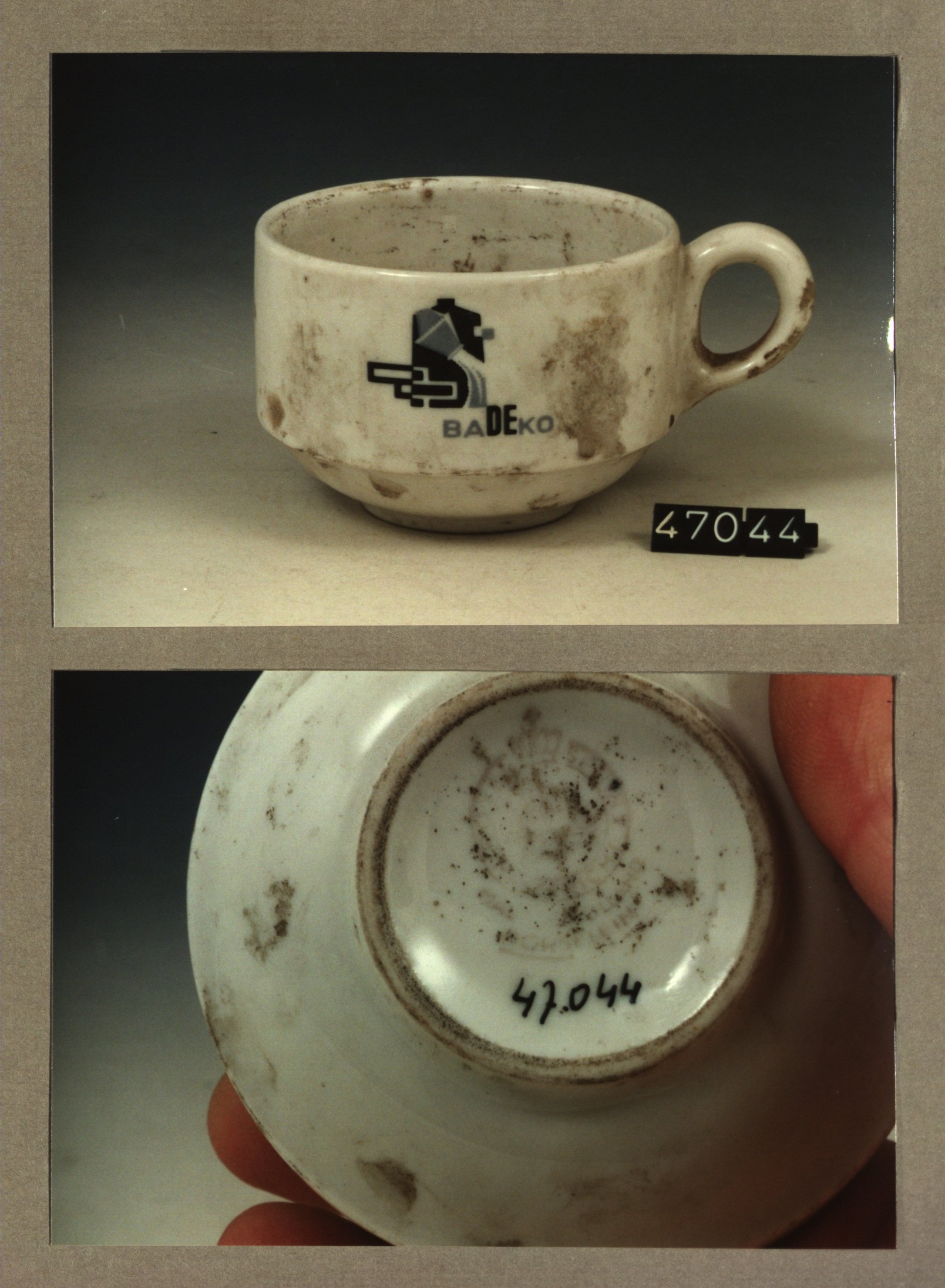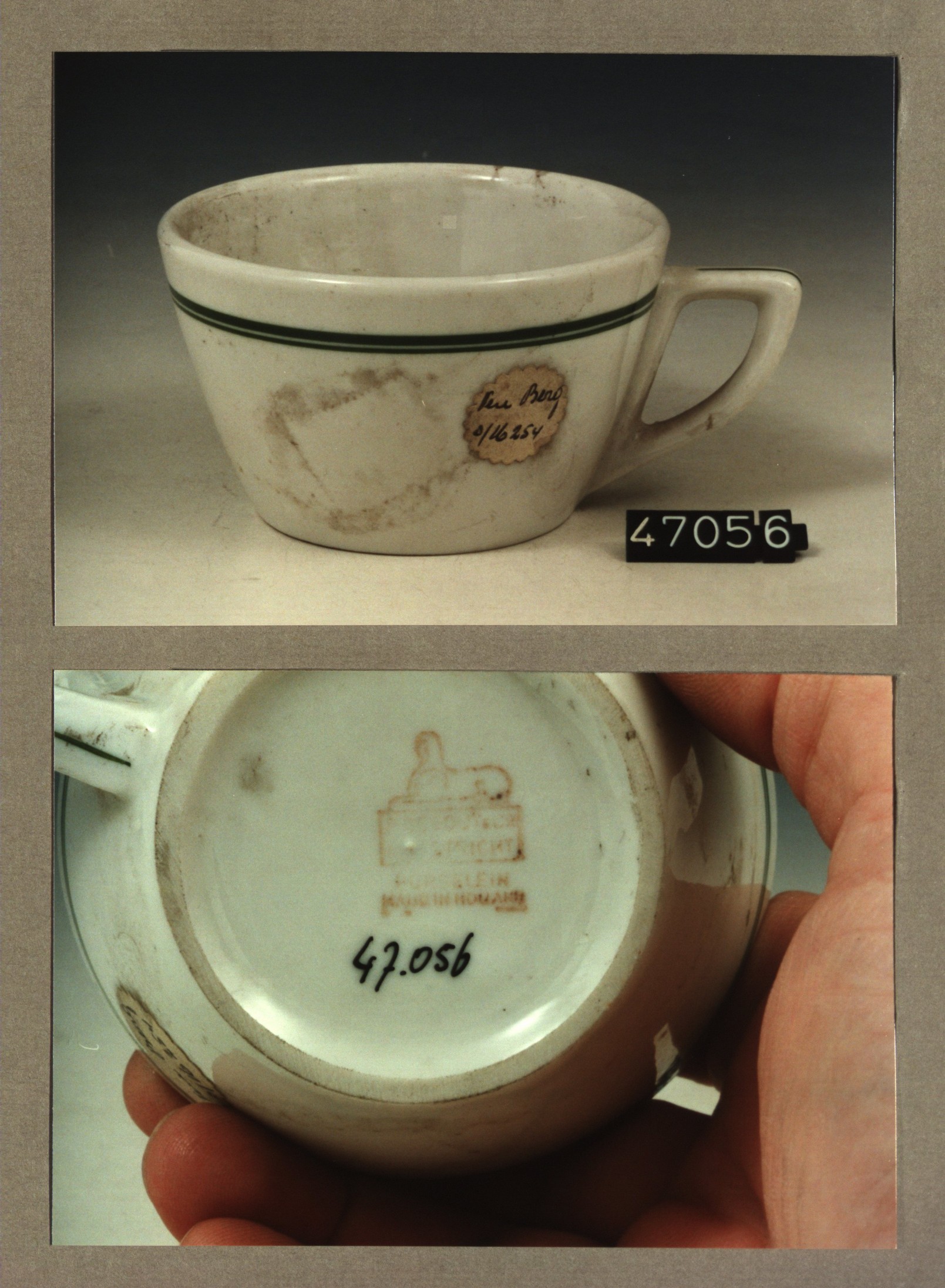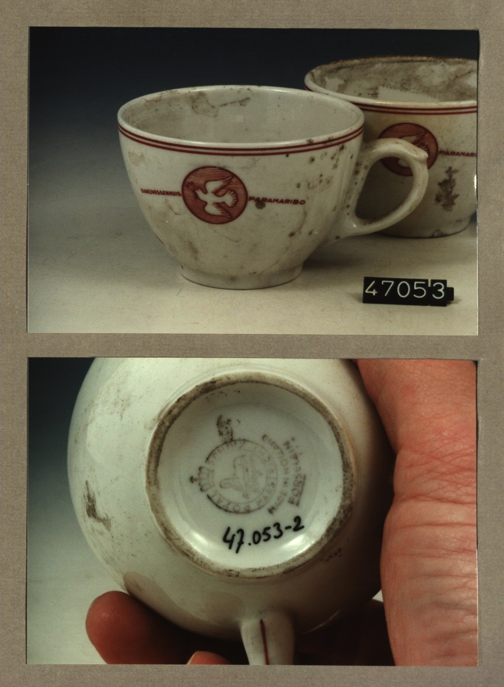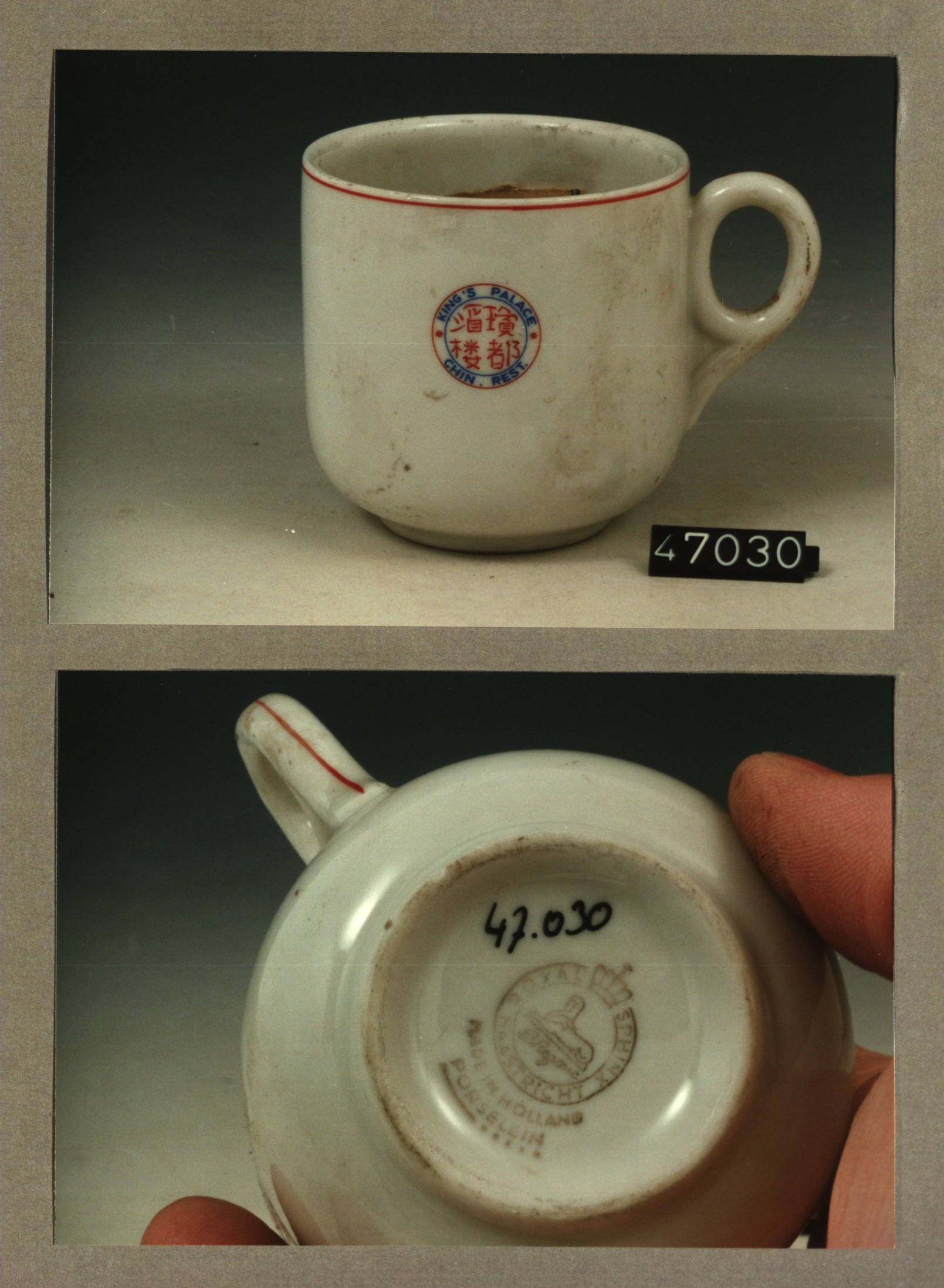 Kop met opschrift, model SPH met decor Cafe Veldhoen...
