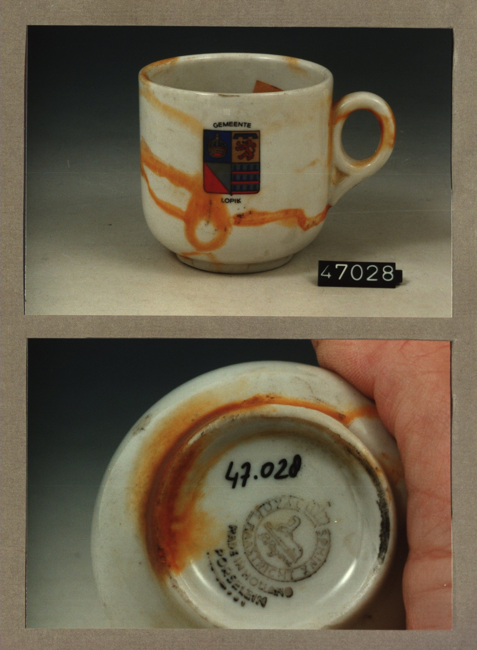 Kop met opschrift, model F2 met decor Gemeente Lopik