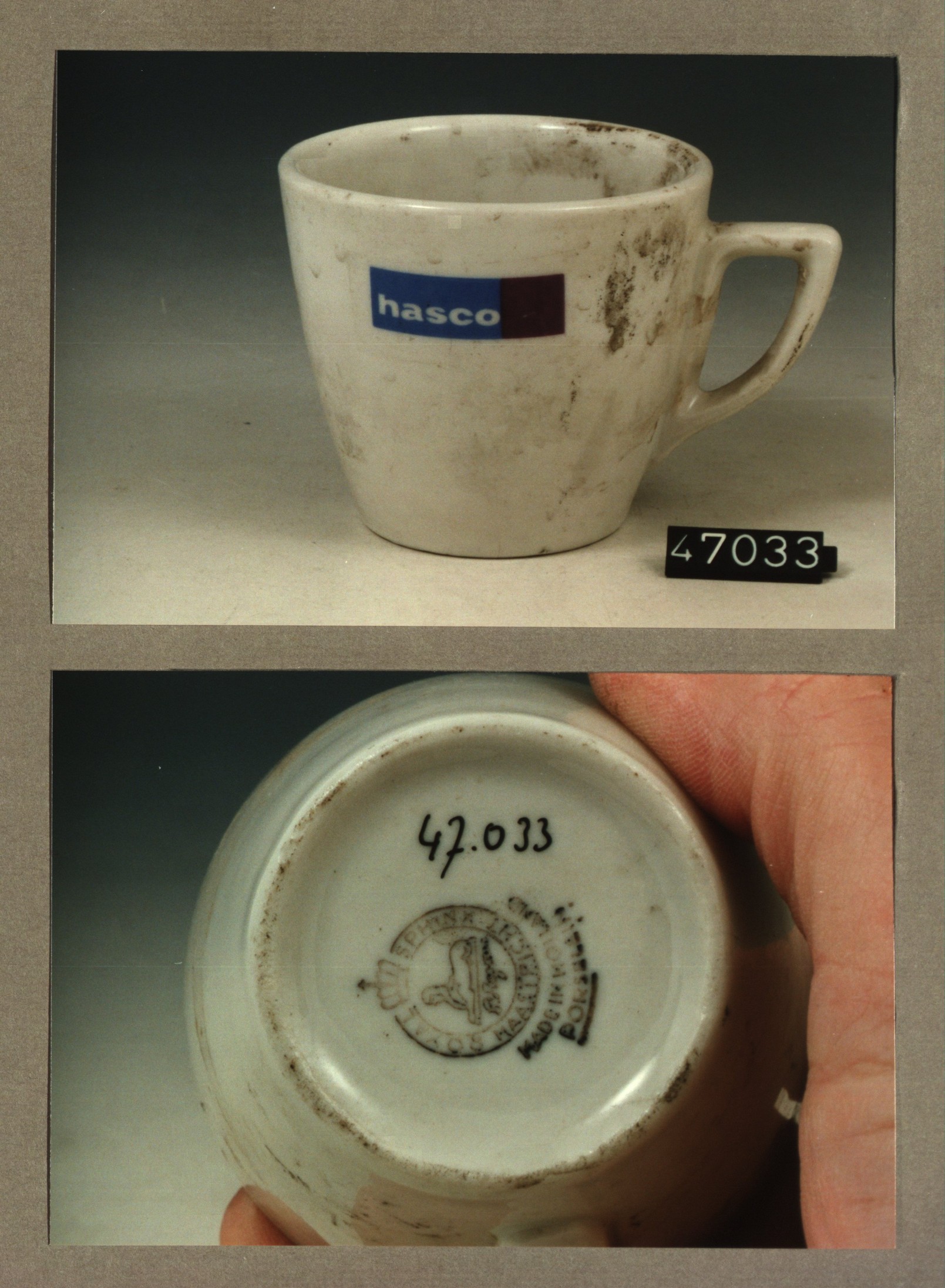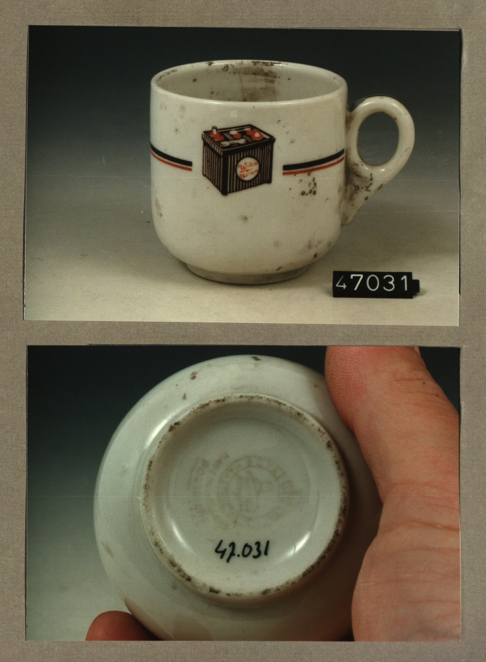 Kop met opschrift, model F met decor Wiko Haarlem accu