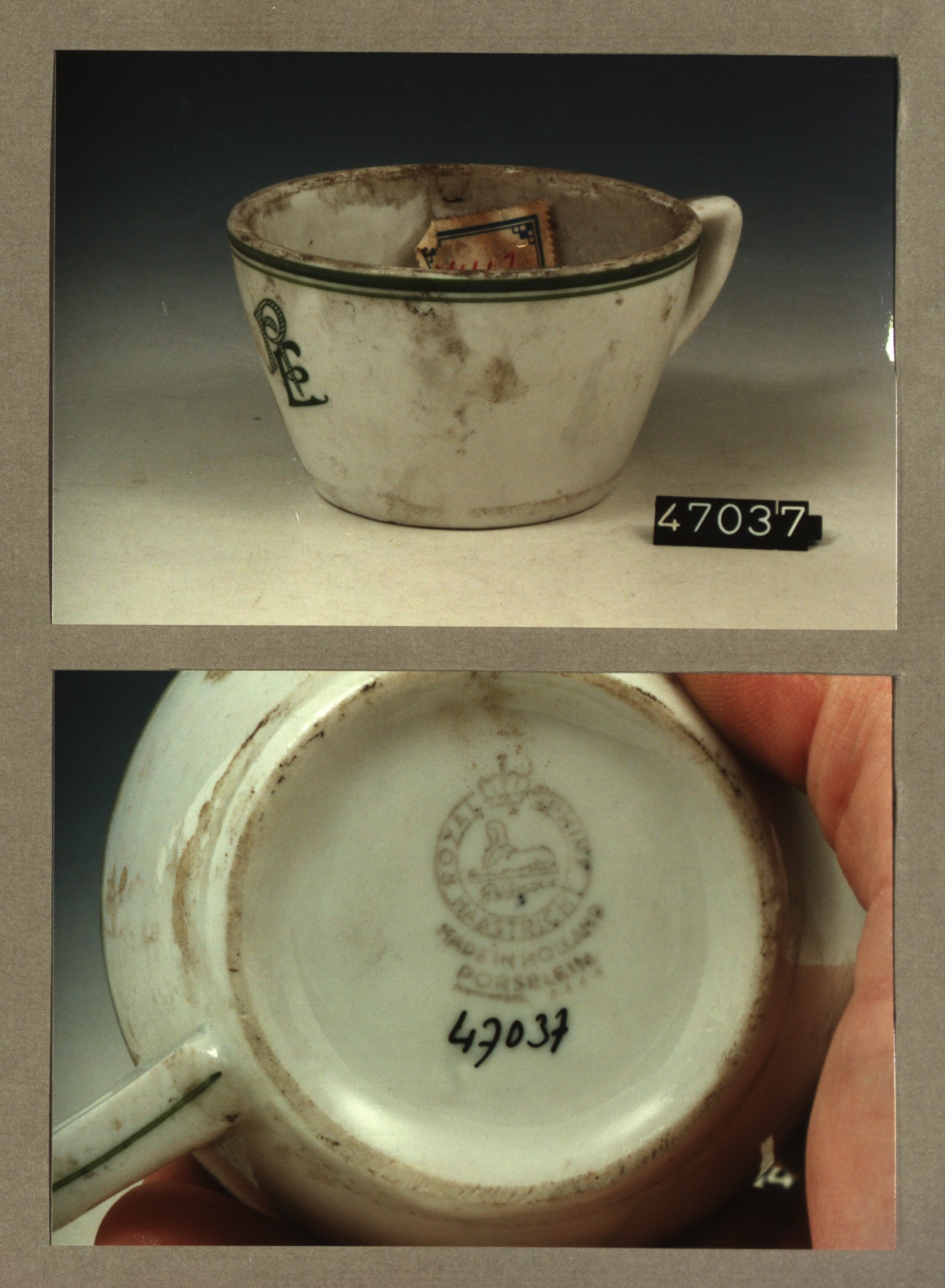 Kop met opschrift, model P met decor Koninklijke Mar...